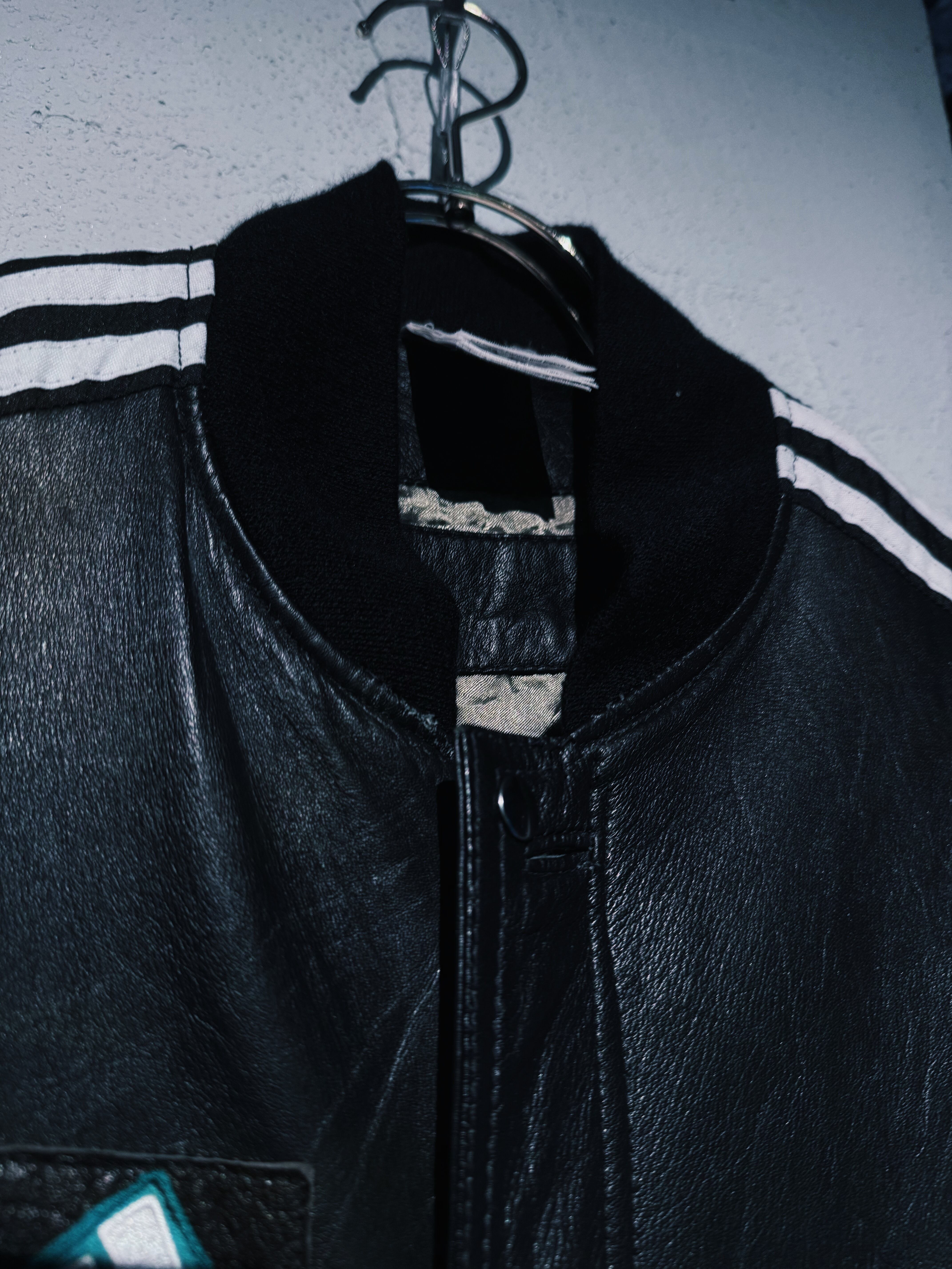 special "original re:make" three stripe design vintage leather jacket three stripe edition