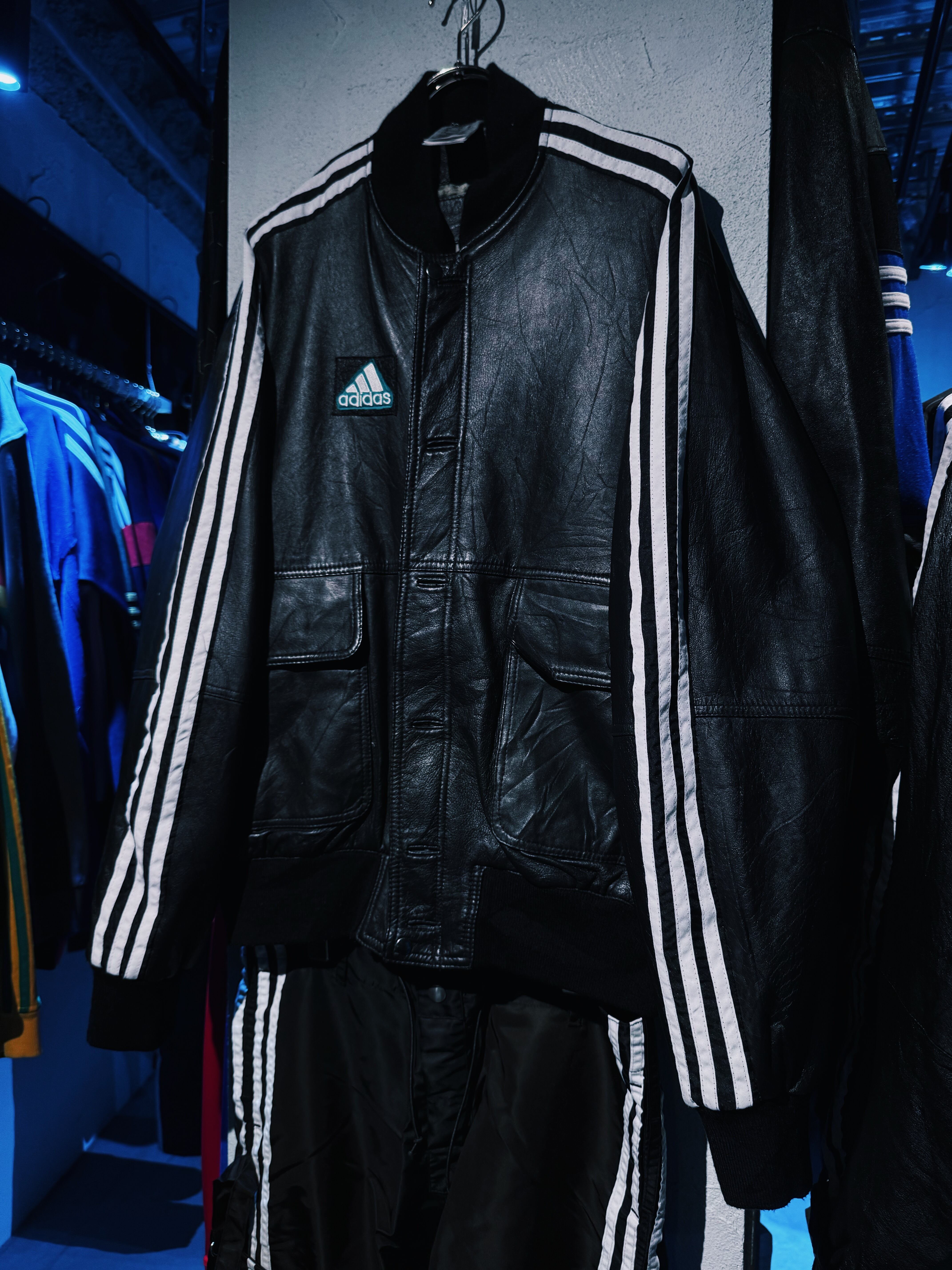 ハリがありモッチモチのレザージャケットにシティーポップでハイストリートなスリーストライプの上質なトラックテキスタイルを"融合"させてハイモード×ハイストリートなアイテムに。