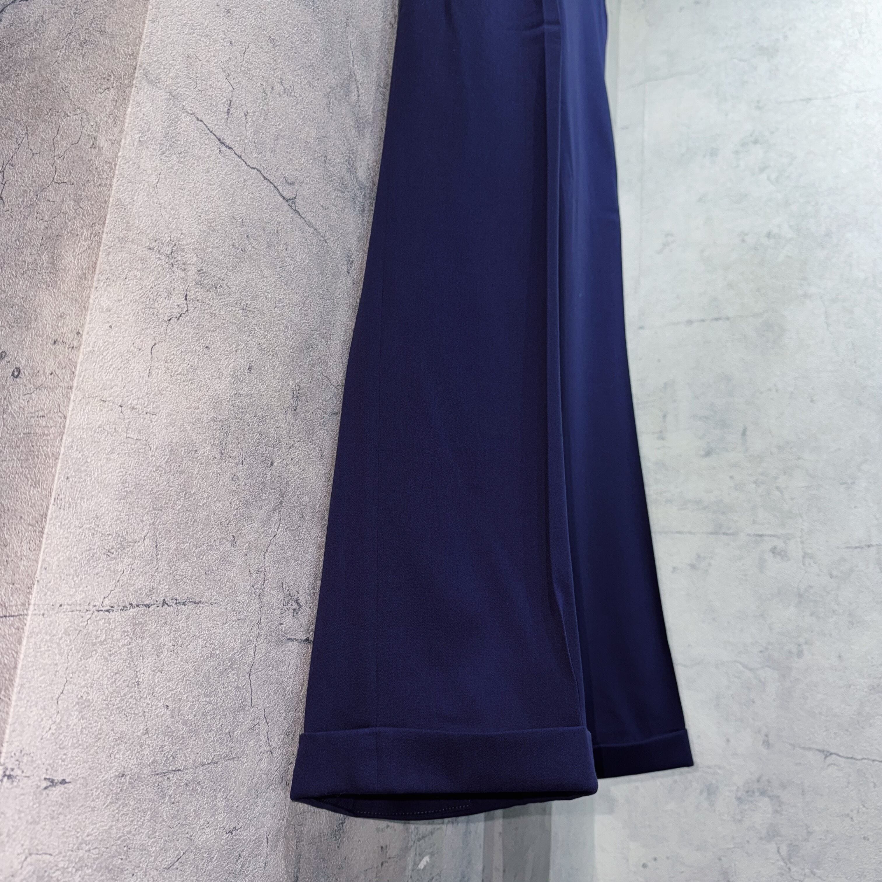 6Bに加え、広めで存在感のあるピークドラペル。パワーショルダーから生まれる立体的なシルエットは力強さを表現してくれます。パンツもセンタープレスをあしらった筒状の美シルエットで単体でも活躍してくれるかと。