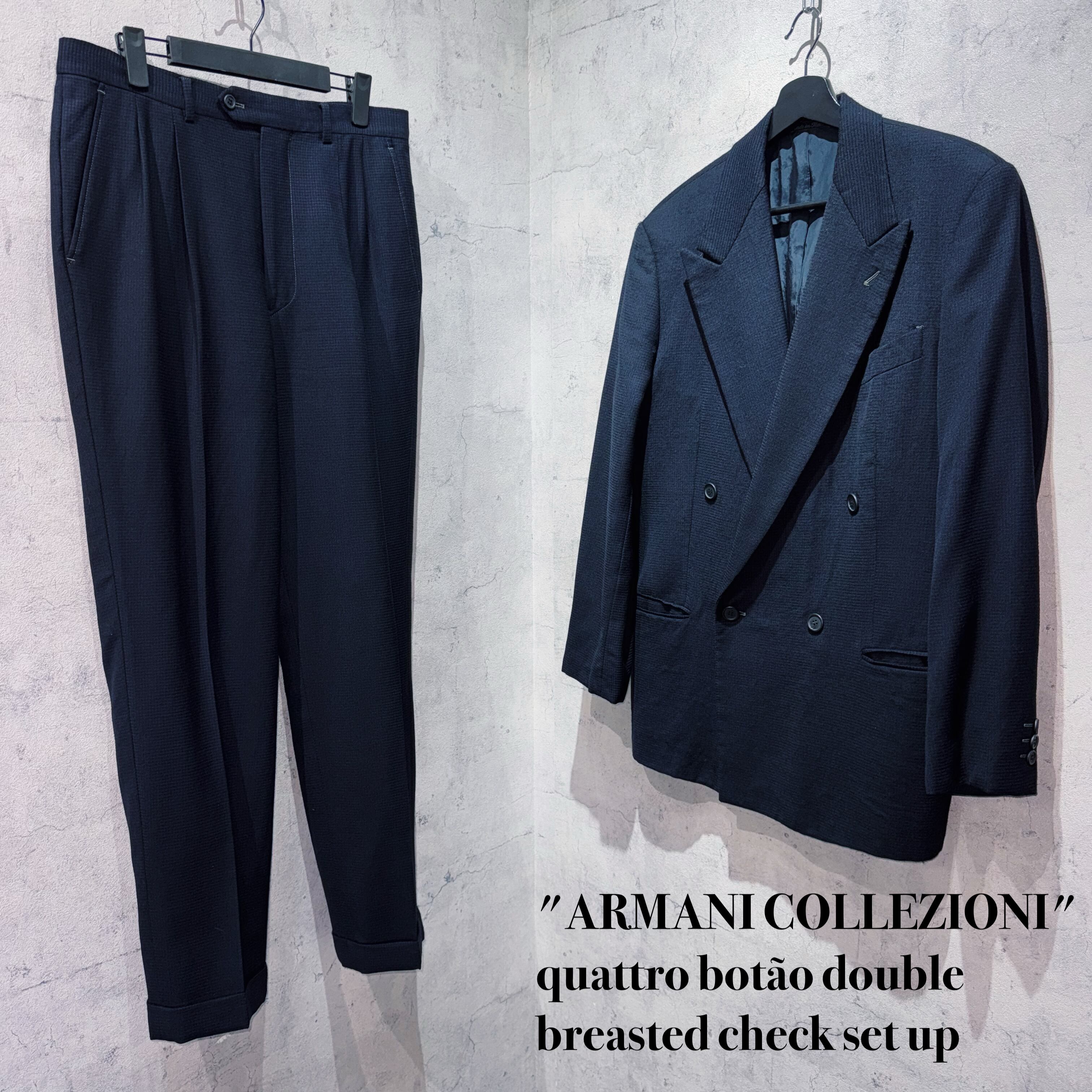 "アルマーニコレッツォーニ"クアトロボタンダブルブレストチェックセットアップ