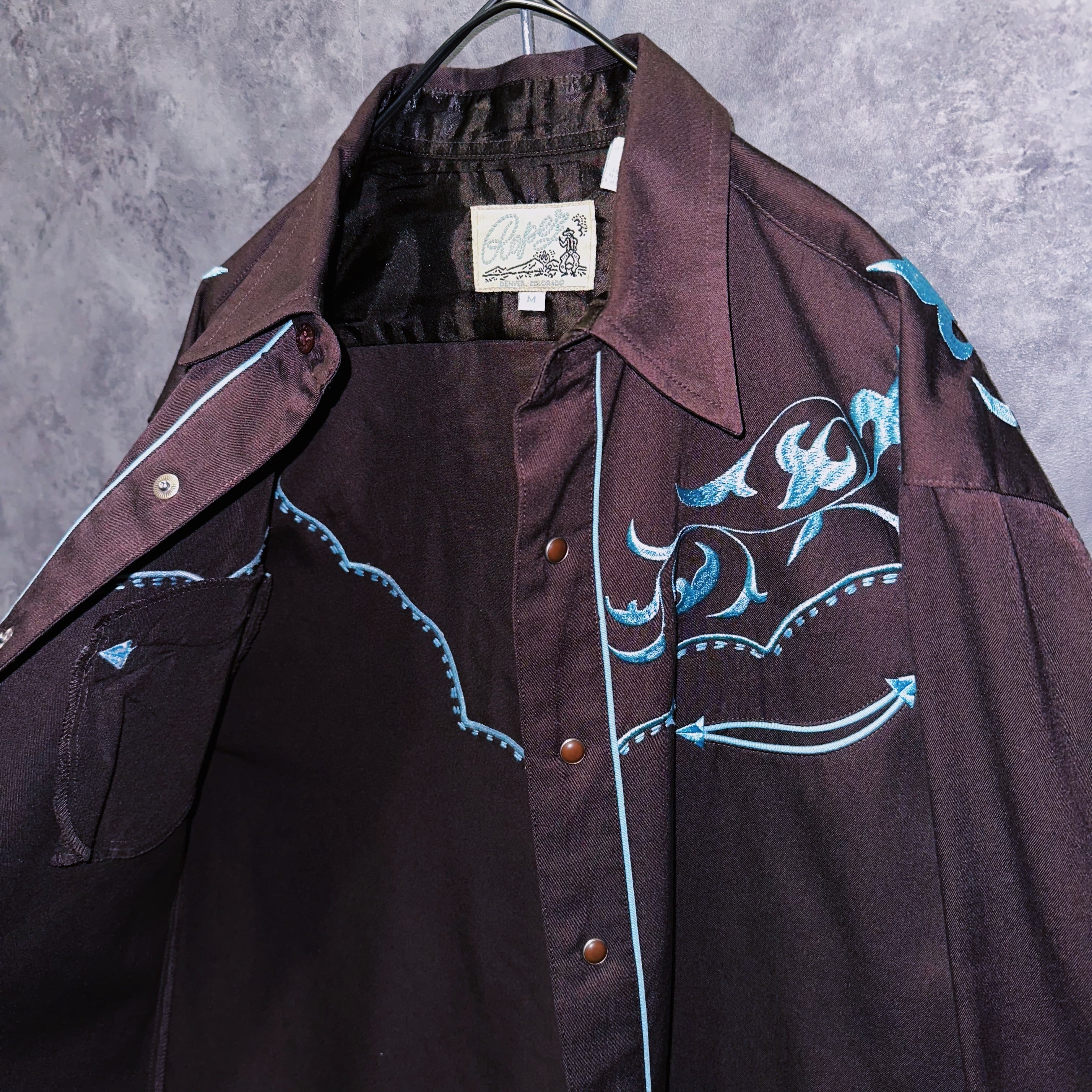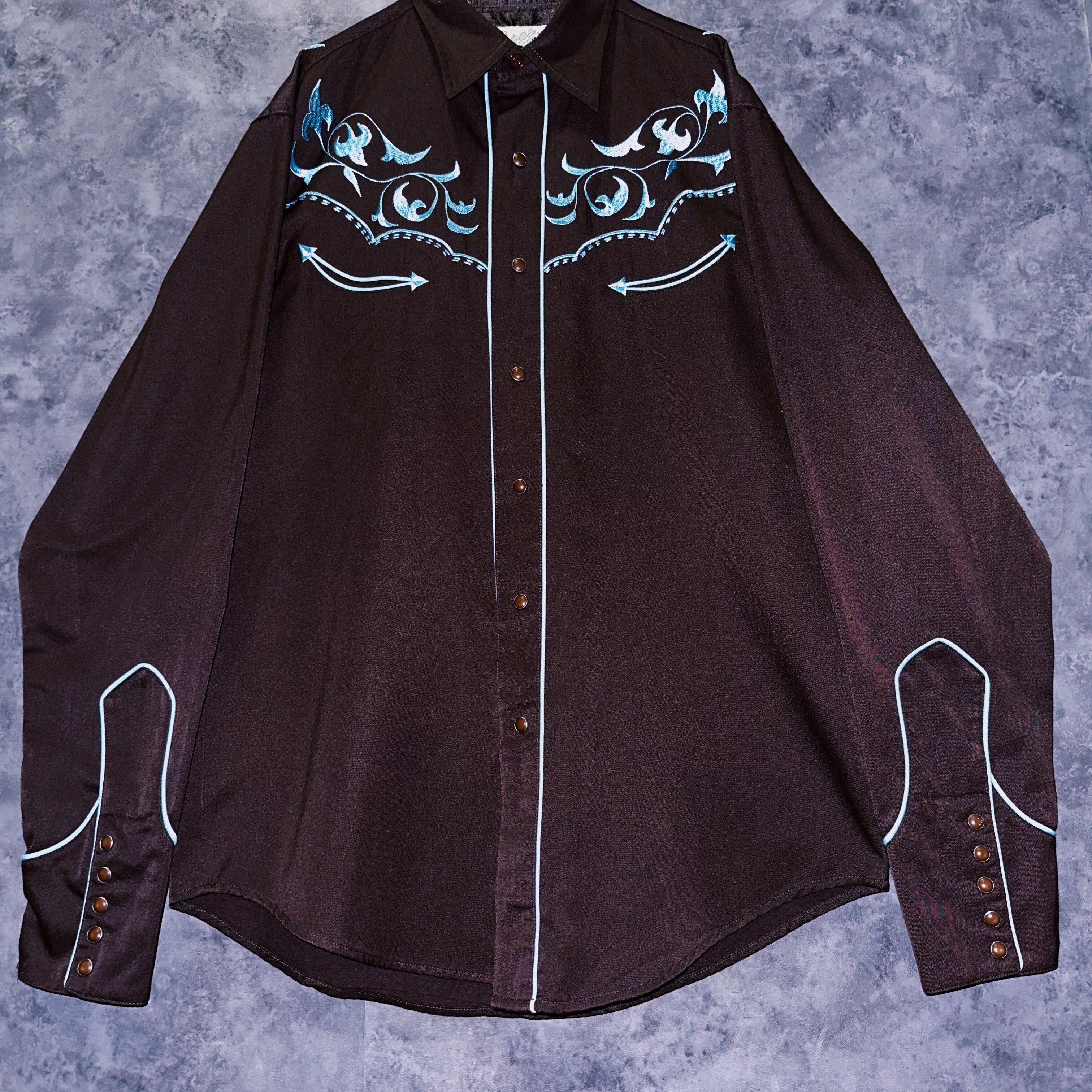 ヴィンテージリーフエンブロイダリーデザインルーズウエスタンシャツ
