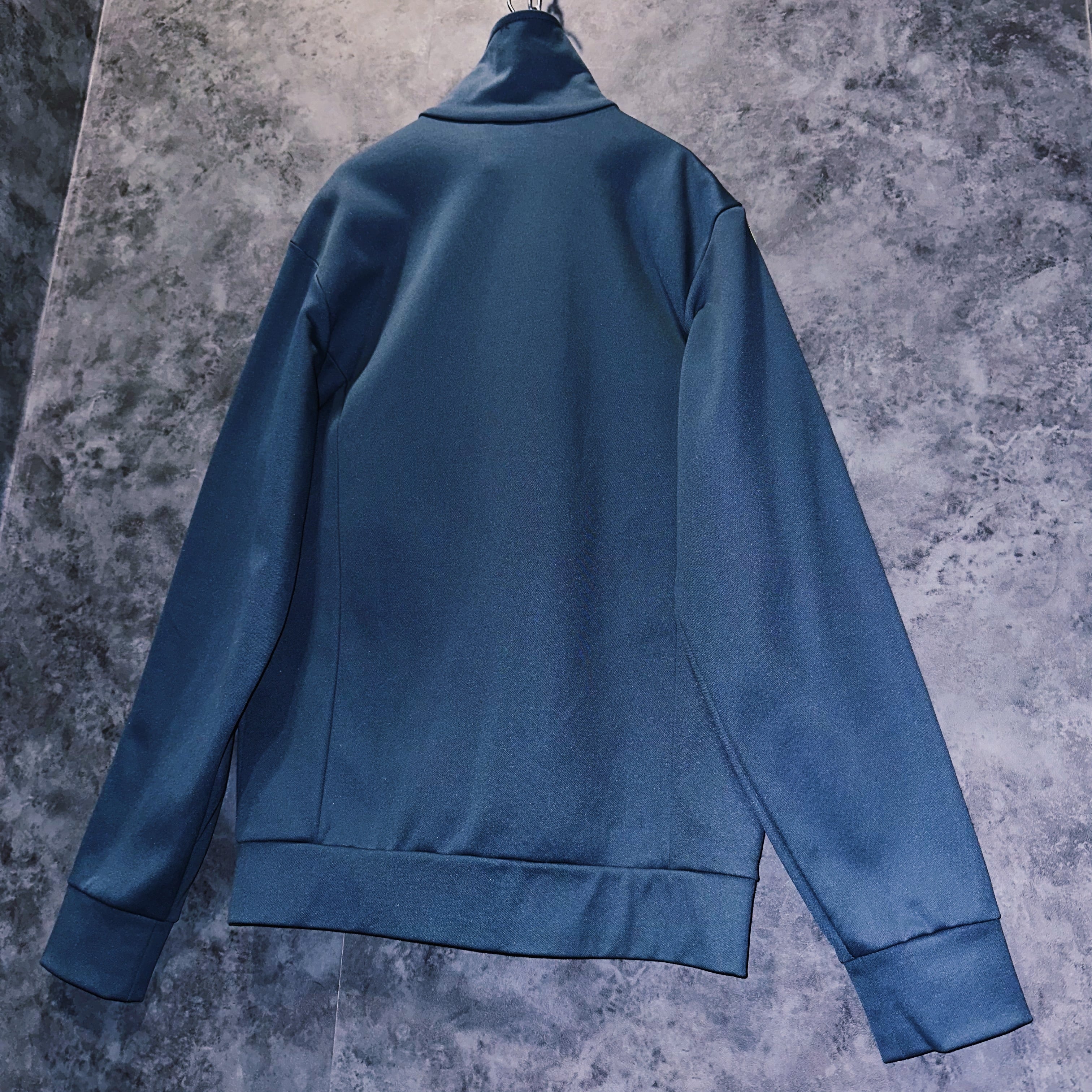シャープなシルエットに加え、トラックジャケットを選ぶ際に重要なファクターでもあるスタンドネックというのも魅力的。