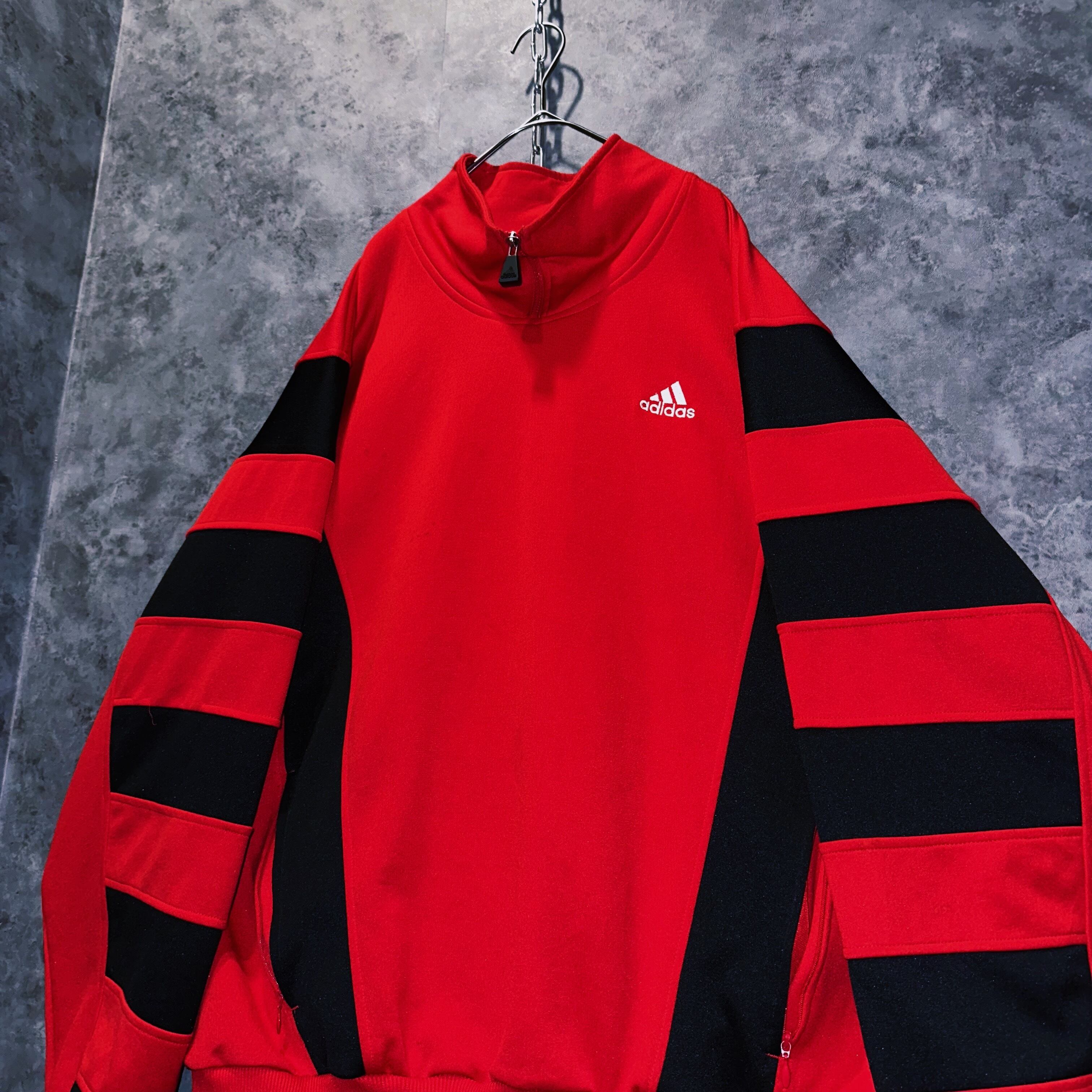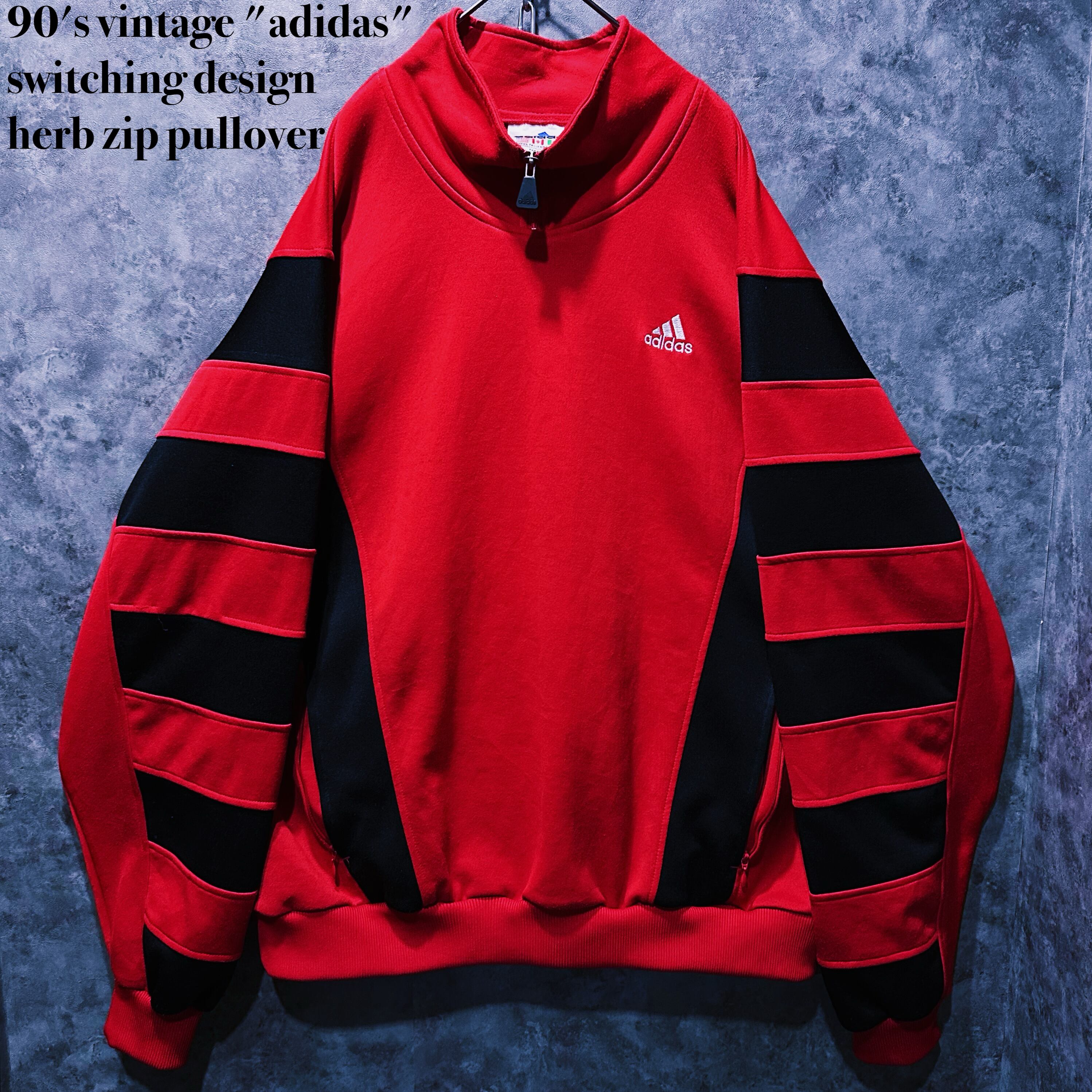 90'sヴィンテージ"adidas"スウィッチングデザインハーフジッププルオーバー