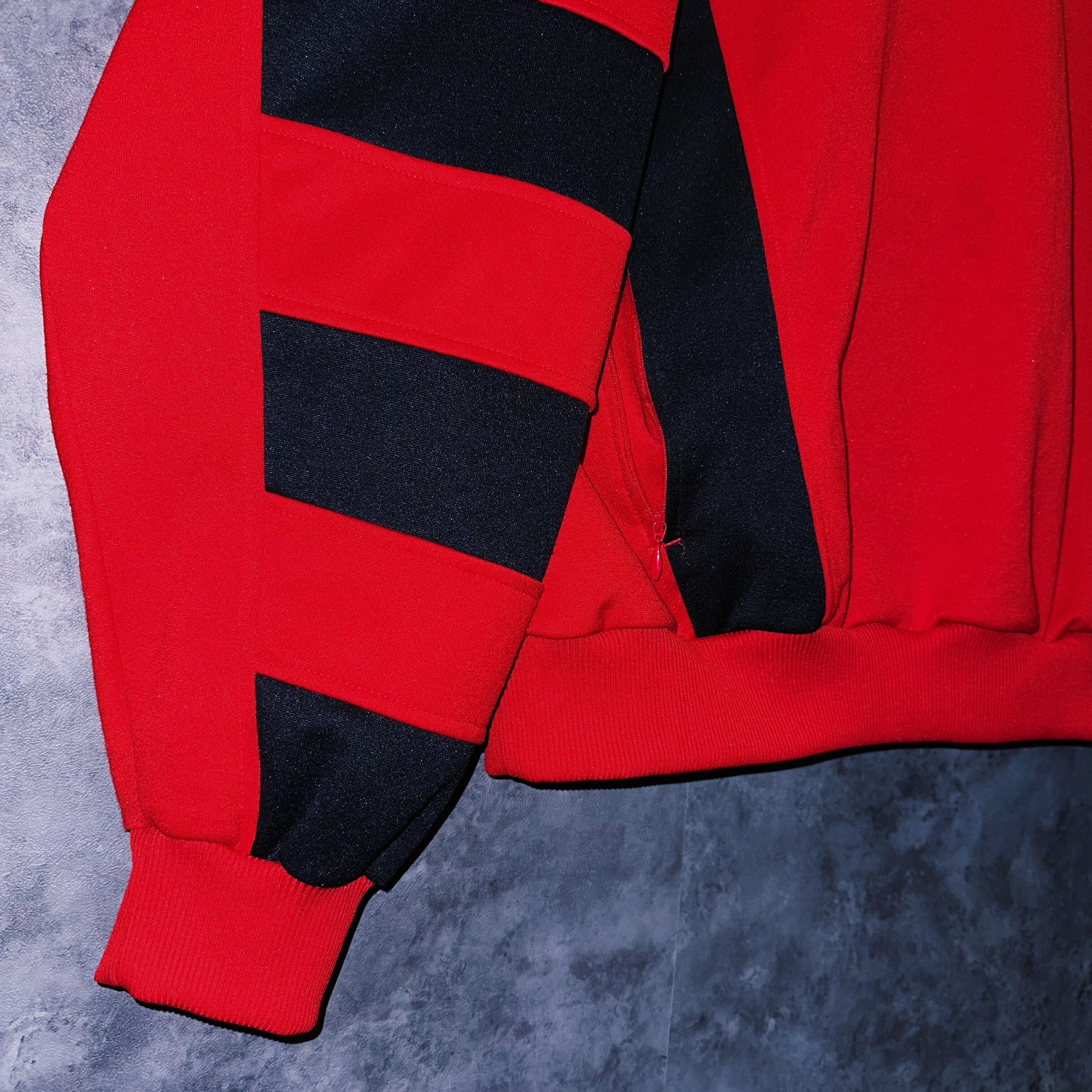 black×redの各色のコントラストが輝くレアカラーリングのトラックプルオーバー。
