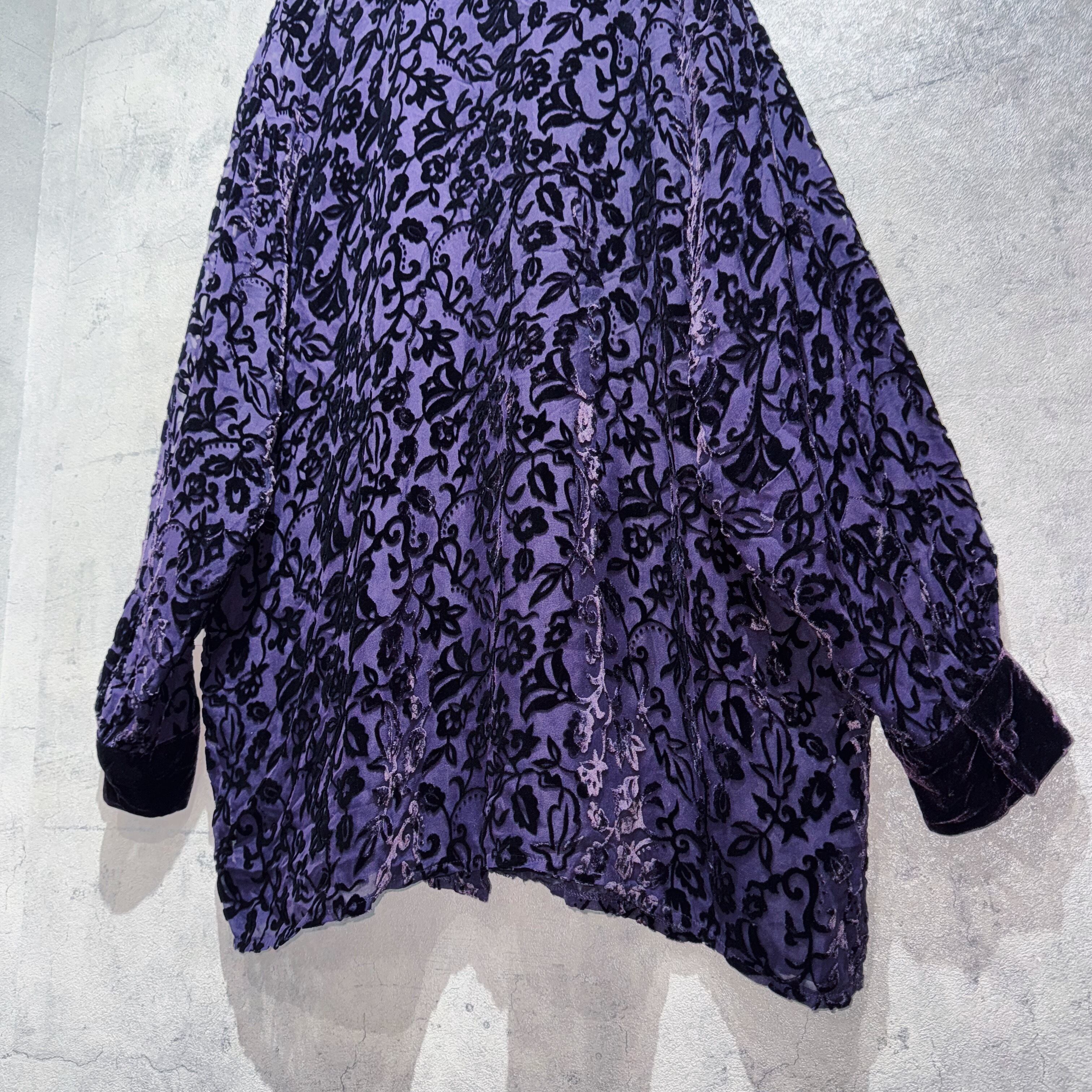 ヴィンテージボタニカルパターンデザインベルベットシアーシャツ