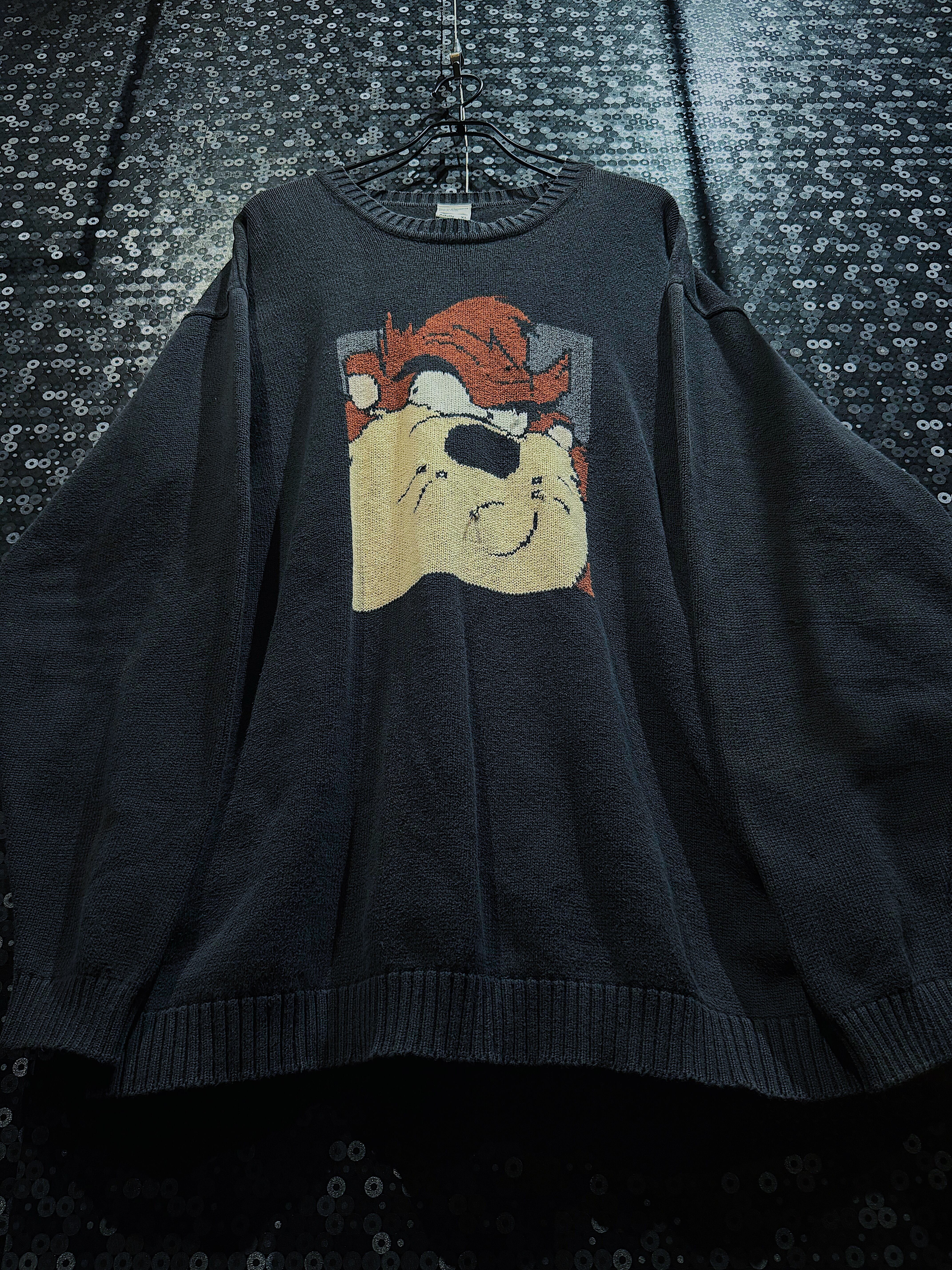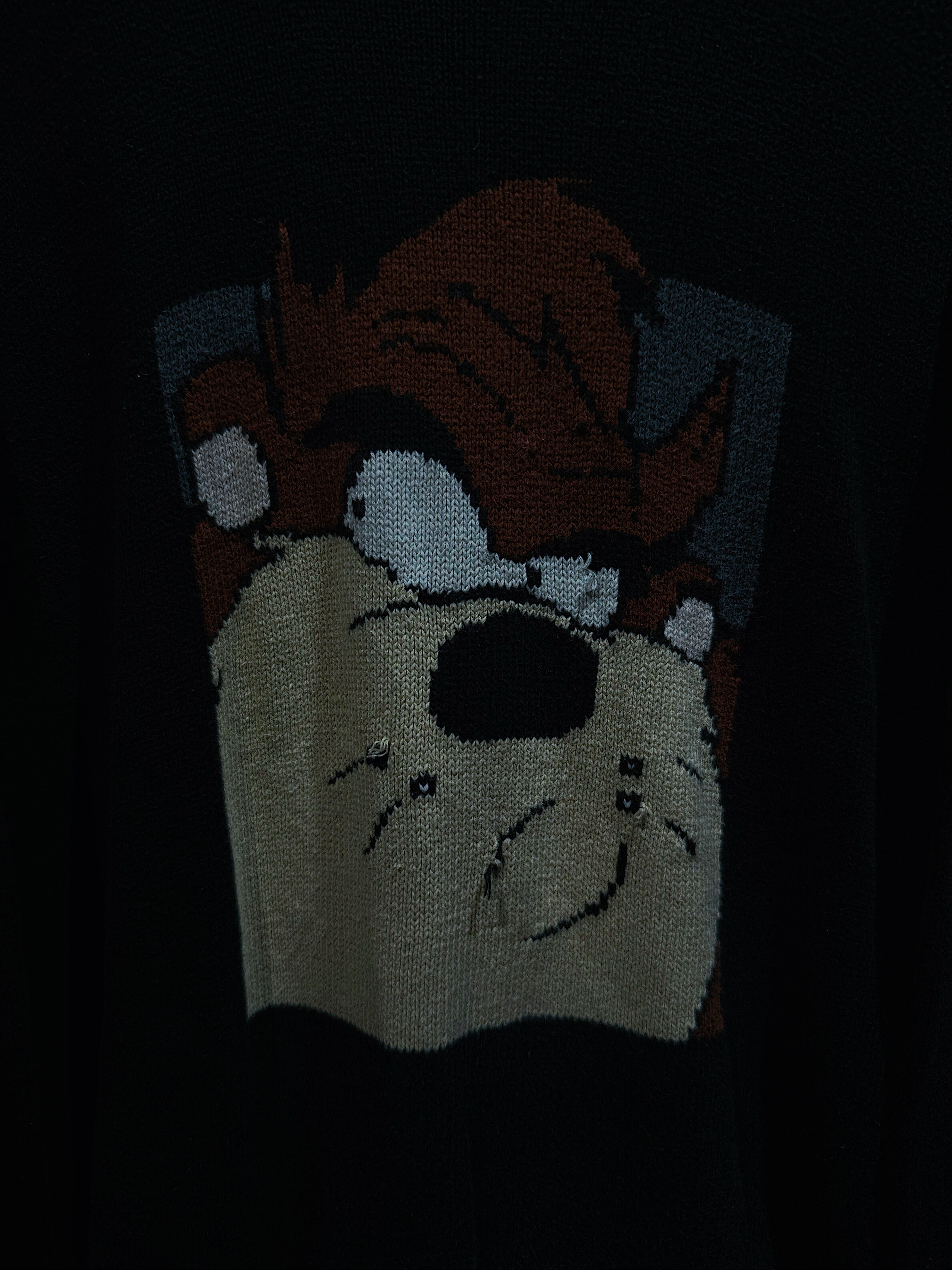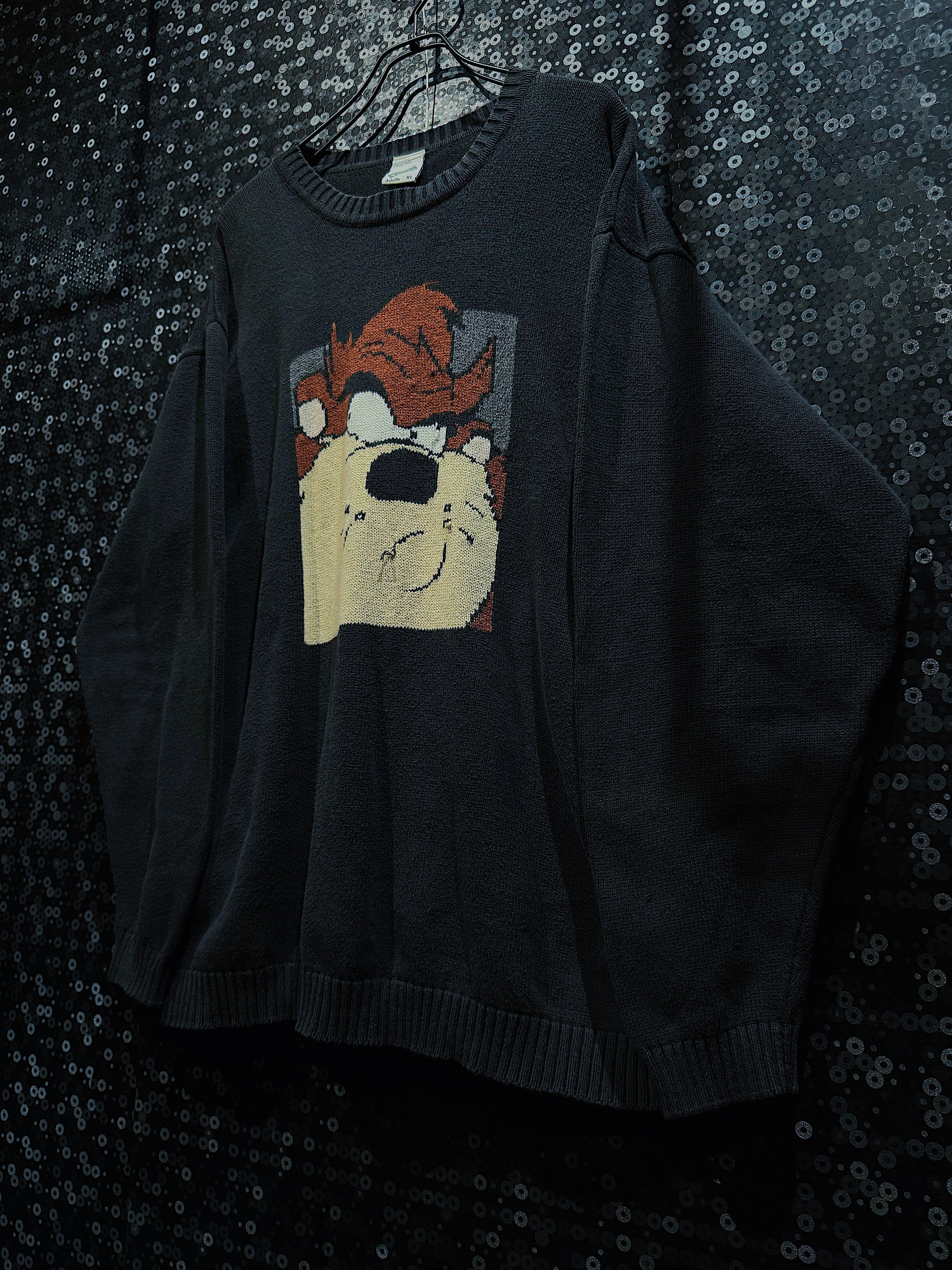 このWarner Bros. Studio Store製のタズマニアン・デビル(Taz)ニットセーターは、90年代から2000年代初頭の公式アイテムの中でも特に希少な一着です。