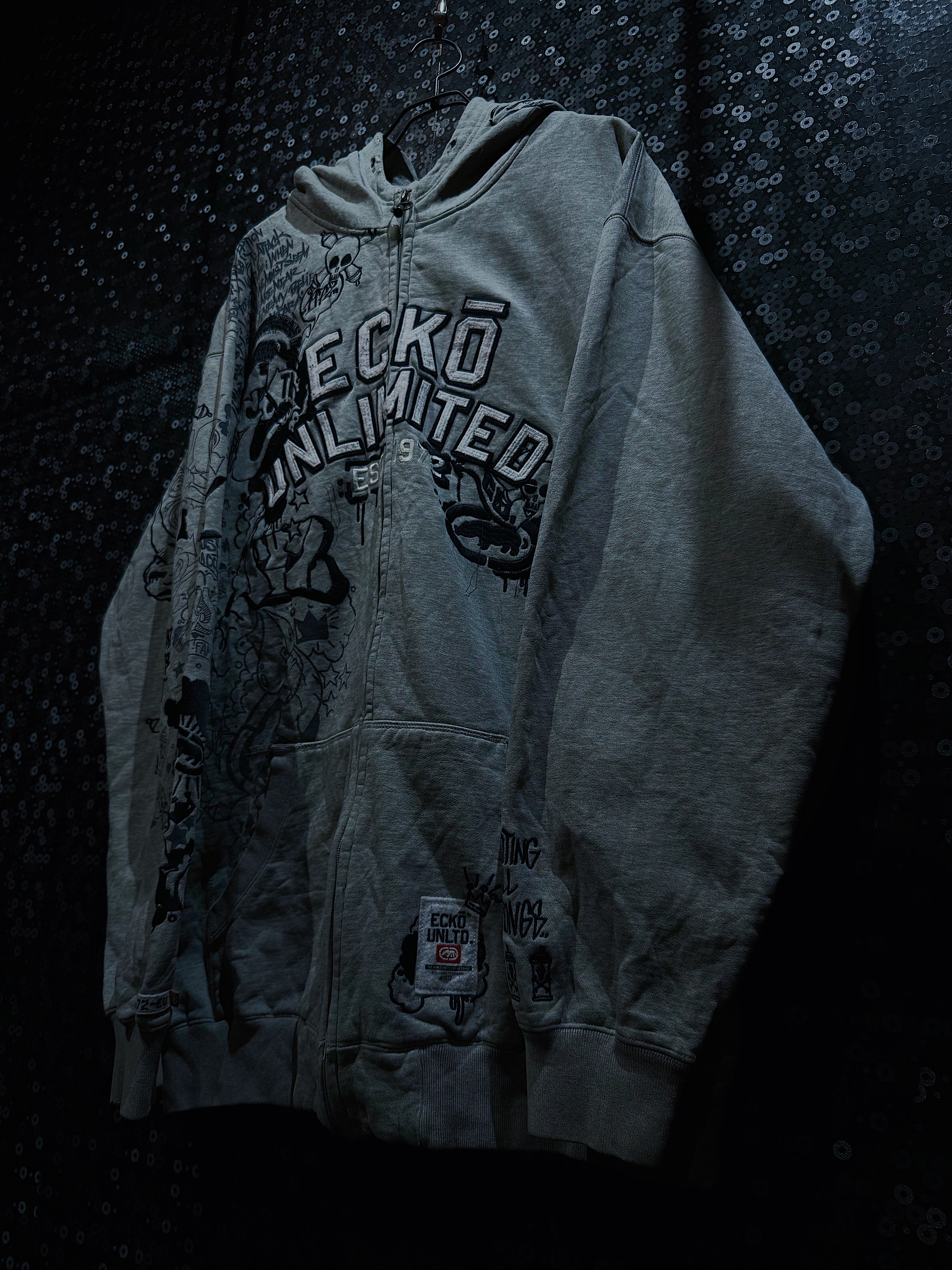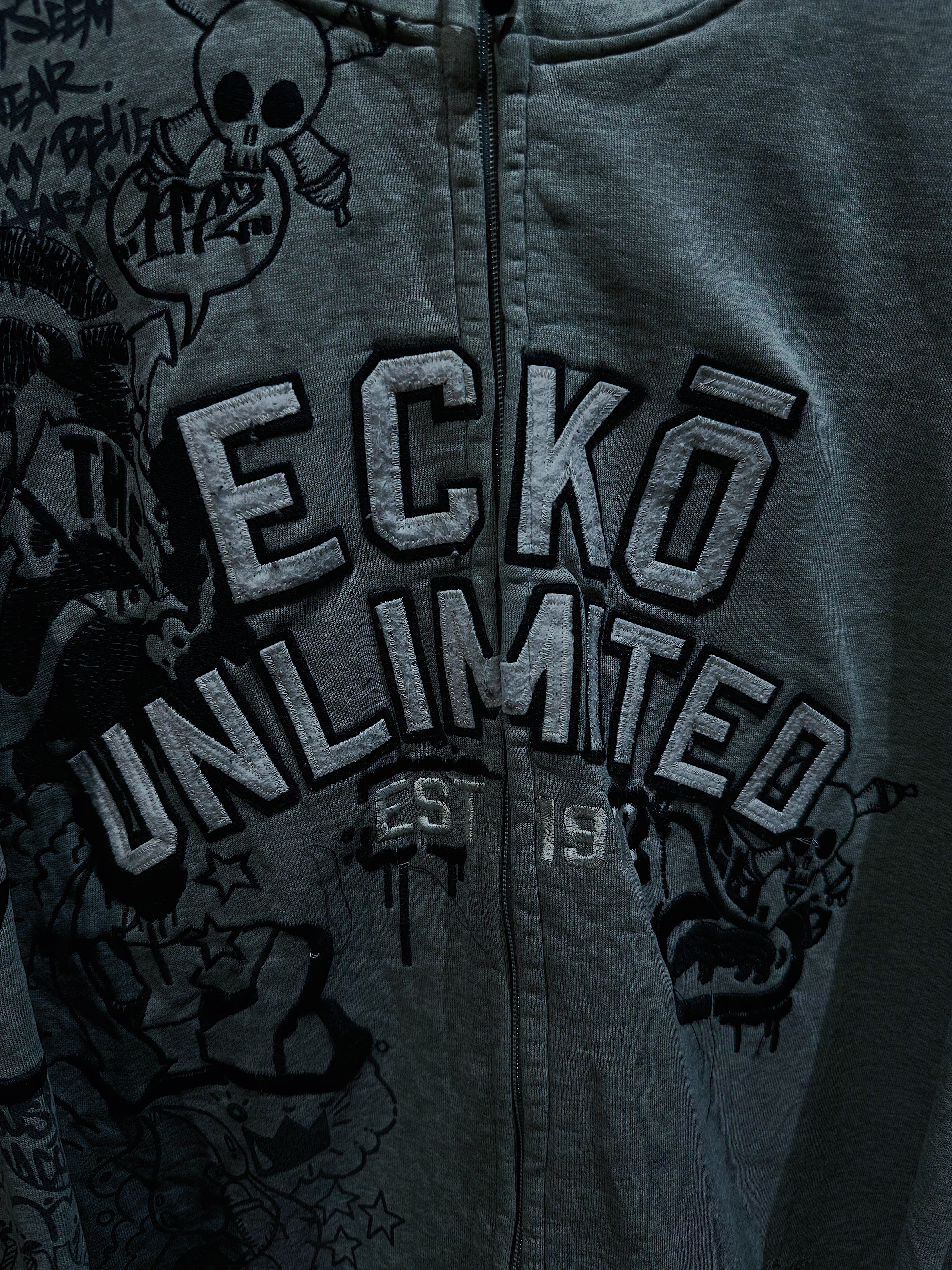 "ECKŌ UNLTD"vintage zip up gray hoodie