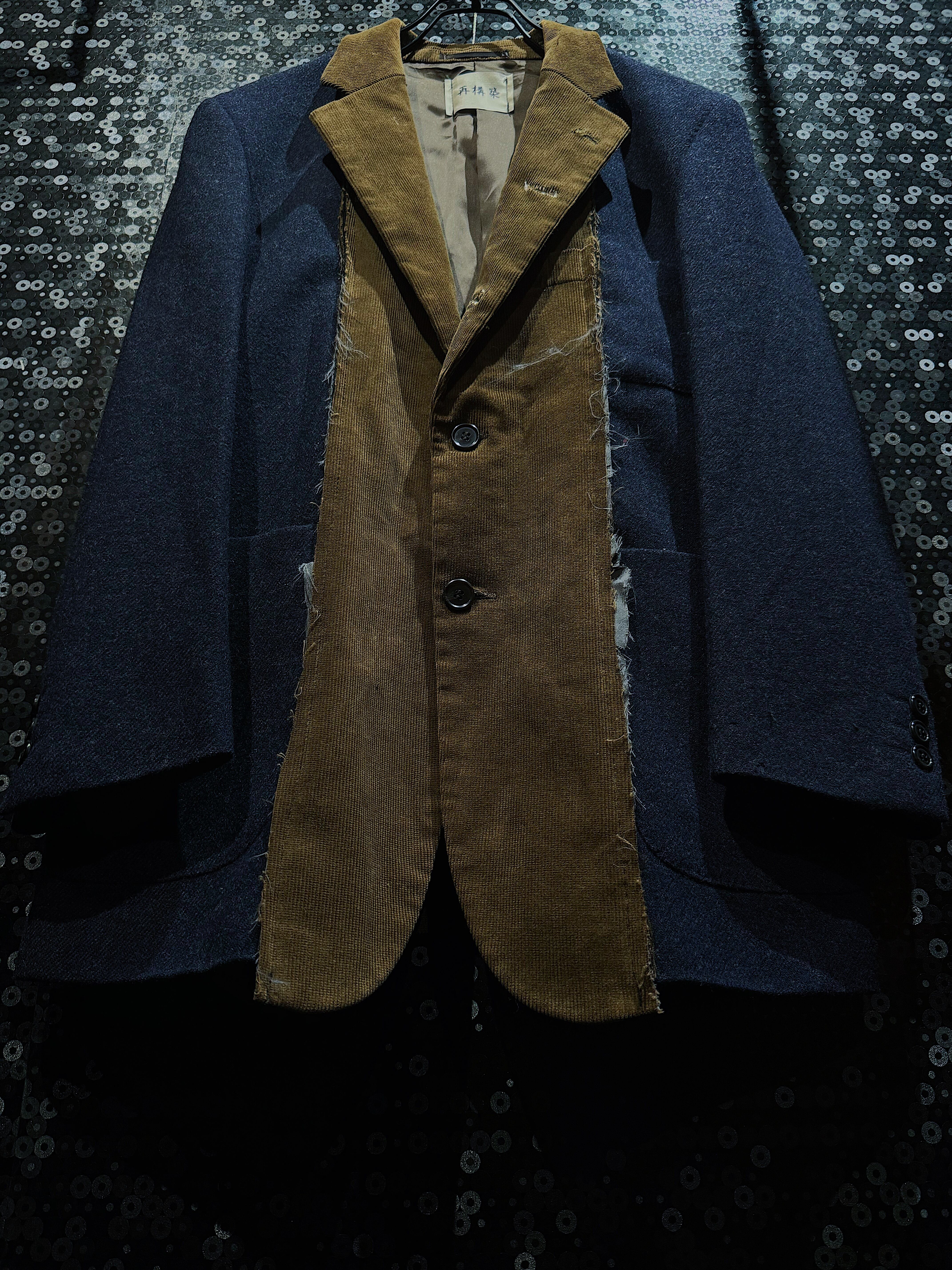 この再倖築テーラードジャケットは、異なる2種類のコーデュロイ素材を大胆にドッキングさせたデザインが特徴的。