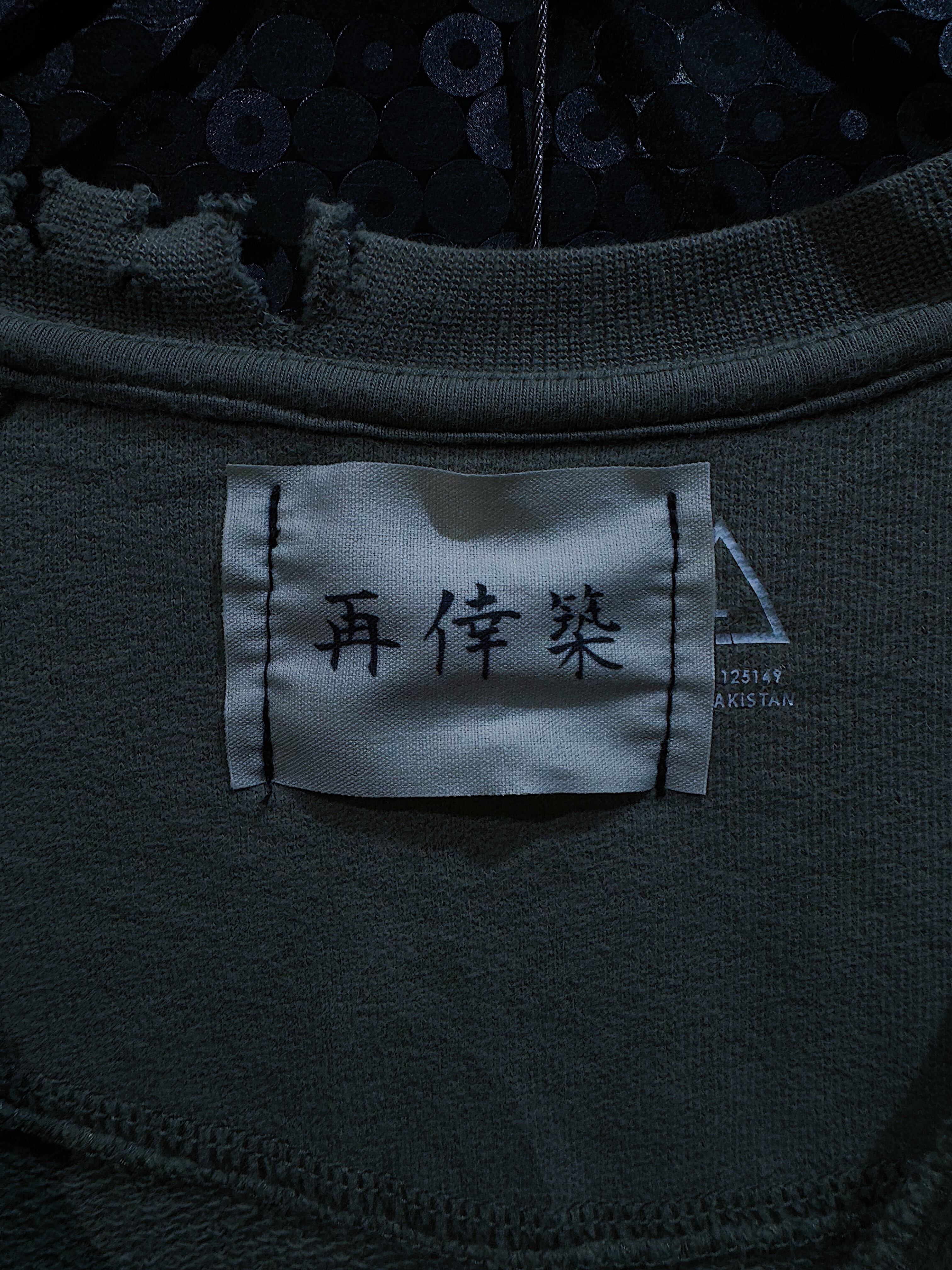 この「再倖築」ボロスウェットは、ヴィンテージ感とクラフトワークが融合した一点物のリメイクアイテムです。