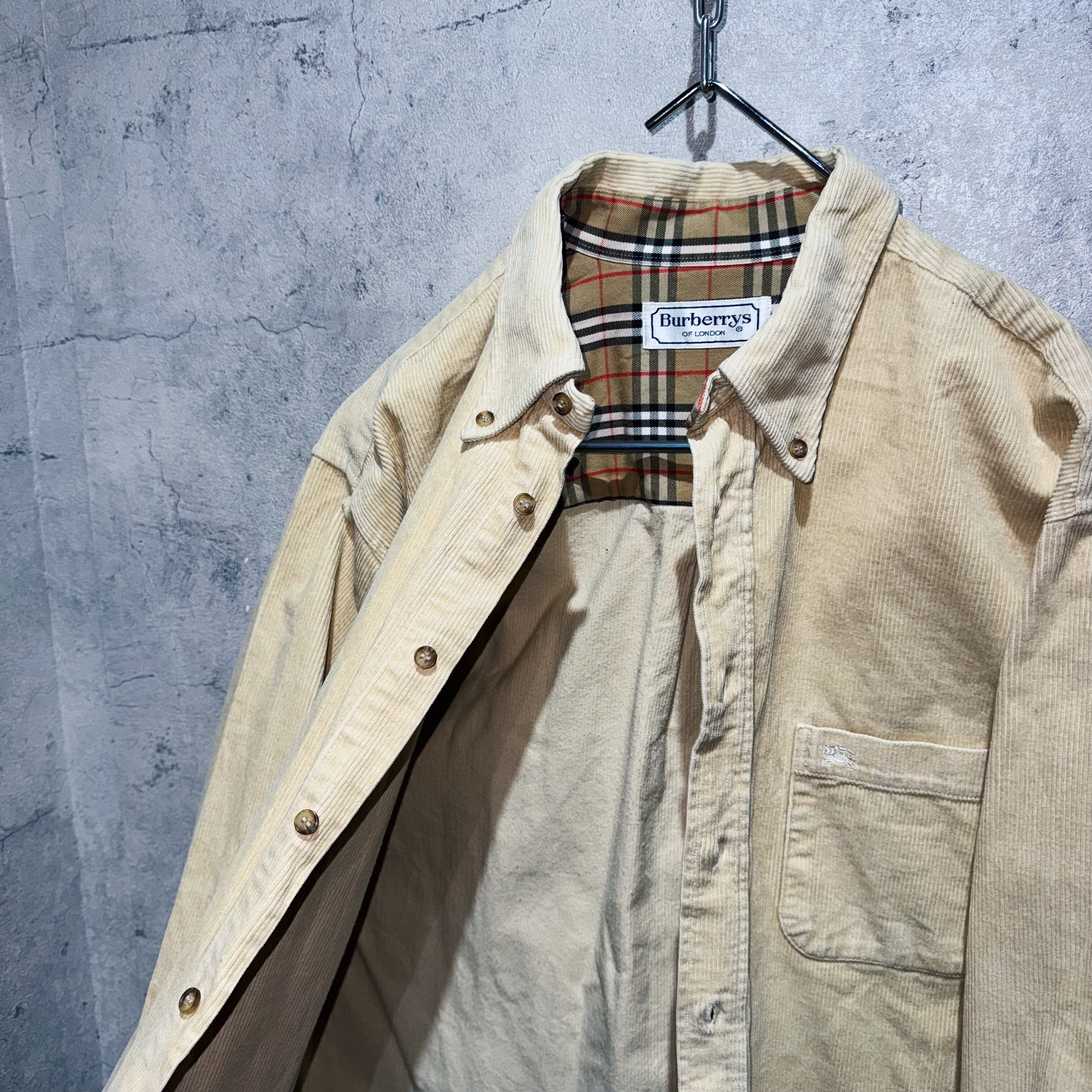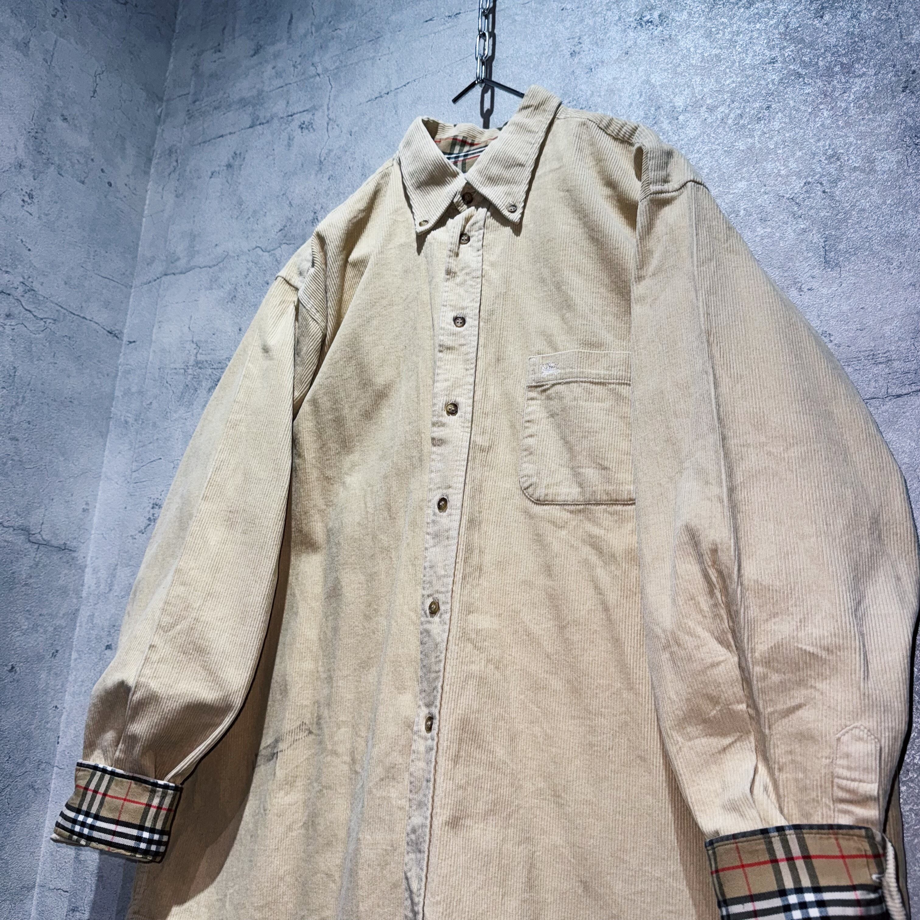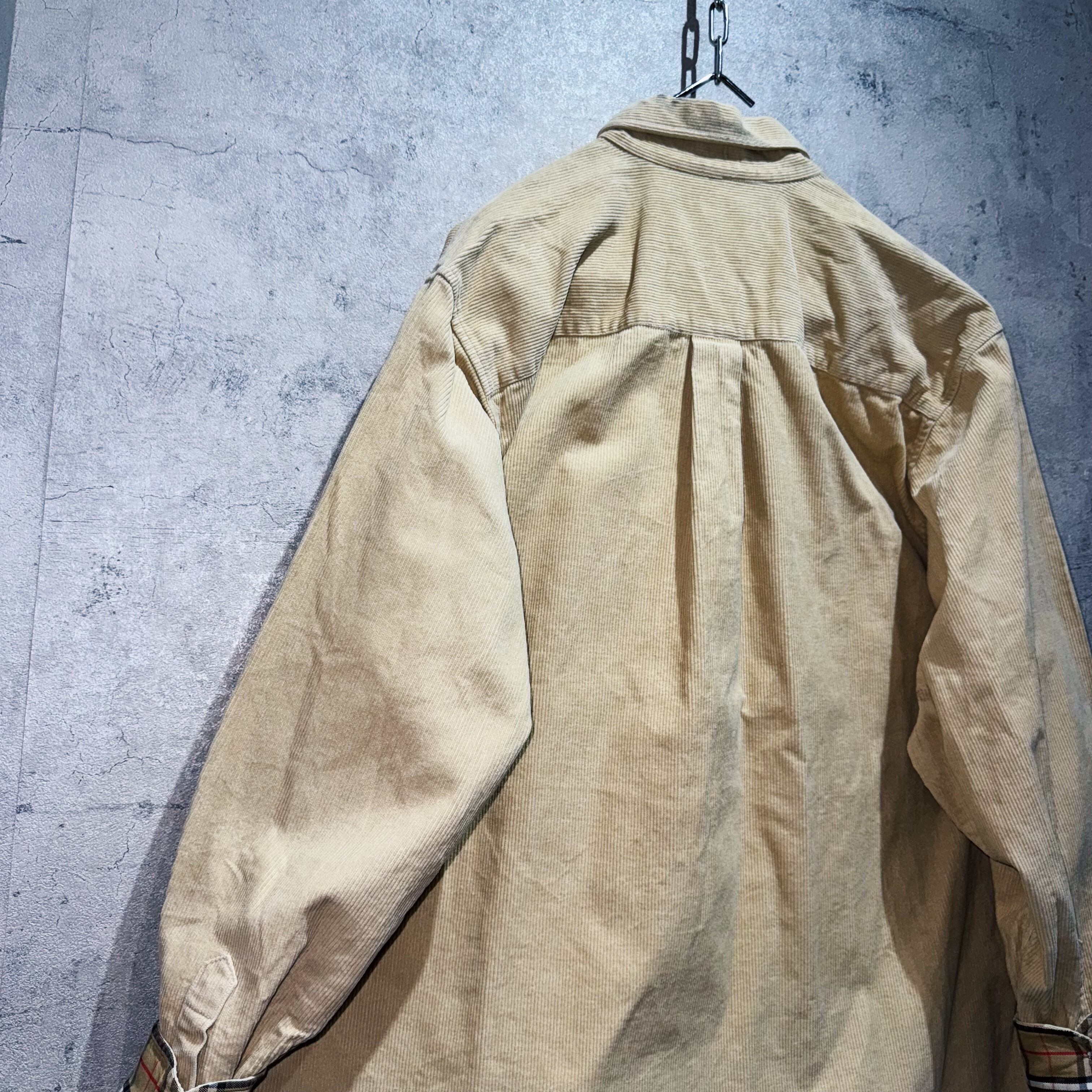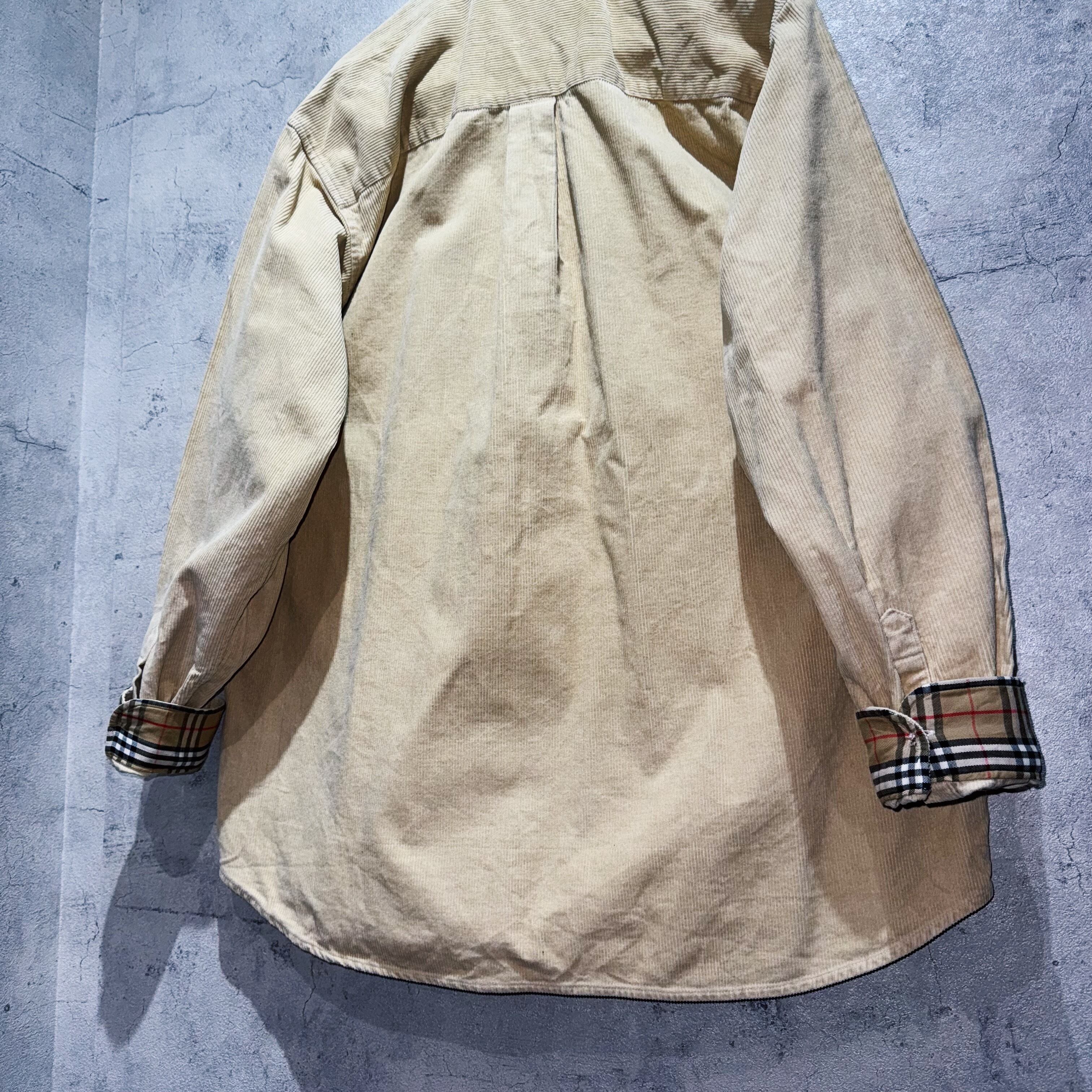 90年代"バーバリー"コーデュロイマテリアルノバチェックシャツ