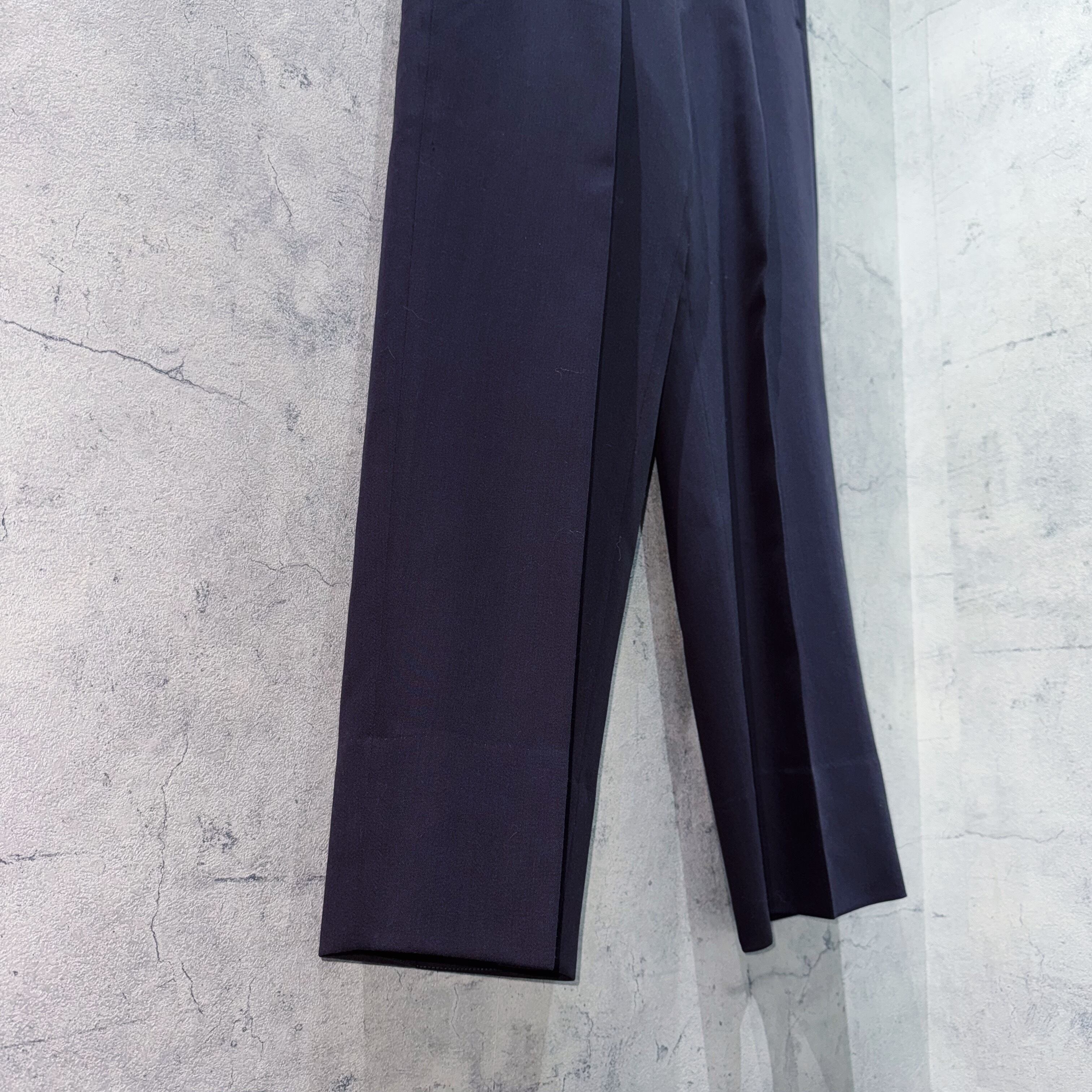 ダブルブレストで立体感を表現してくれるパワーショルダー。パンツもセンタープレスが施された美しいシルエットでデザイナーズブランド顔負けのセットアップ。