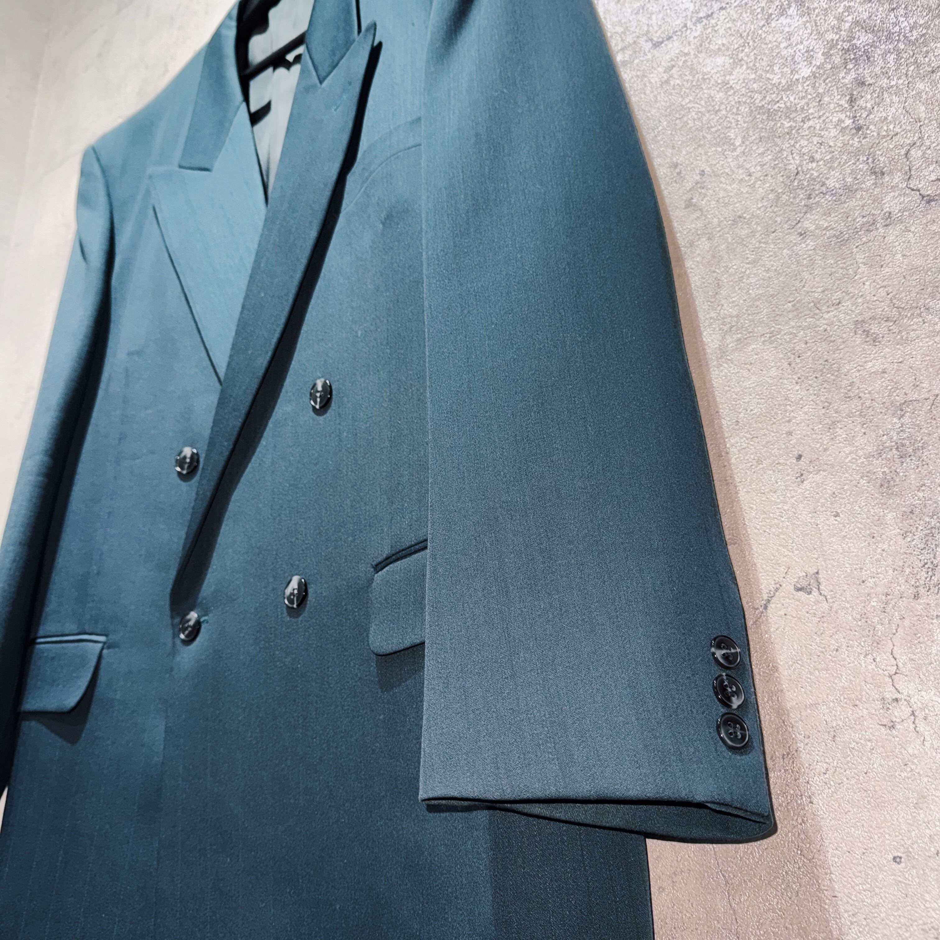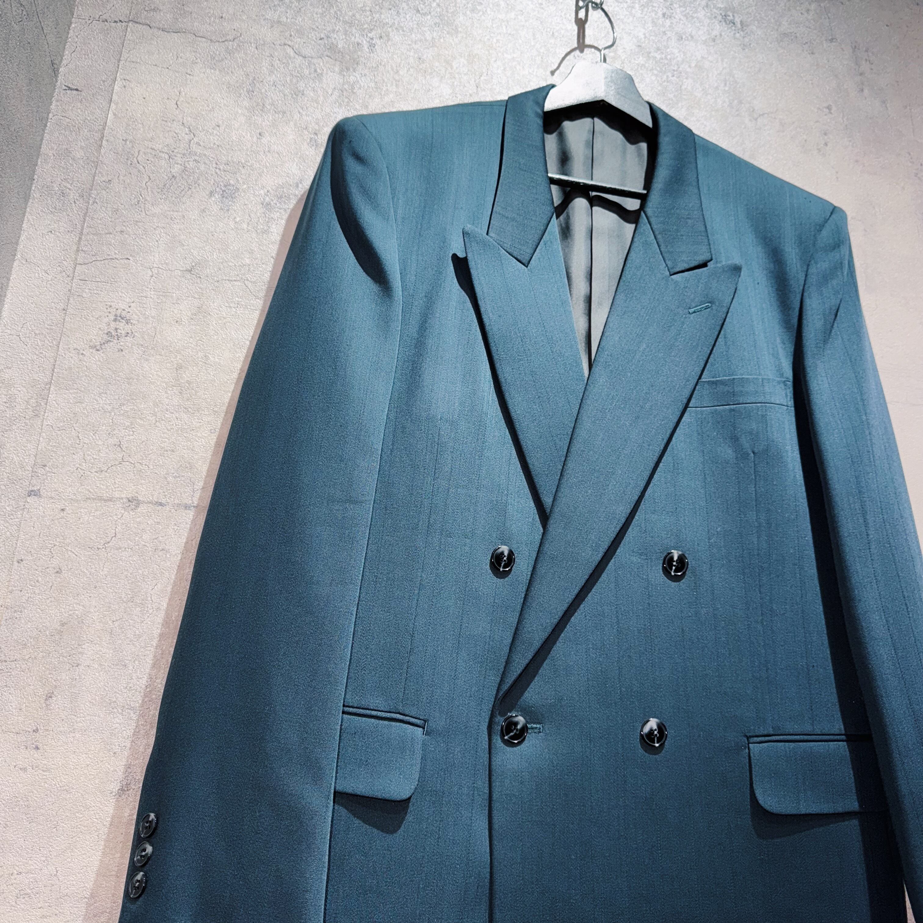 ヴィンテージダークグリーンカラークアトロボタンダブルブレストストライプセットアップ