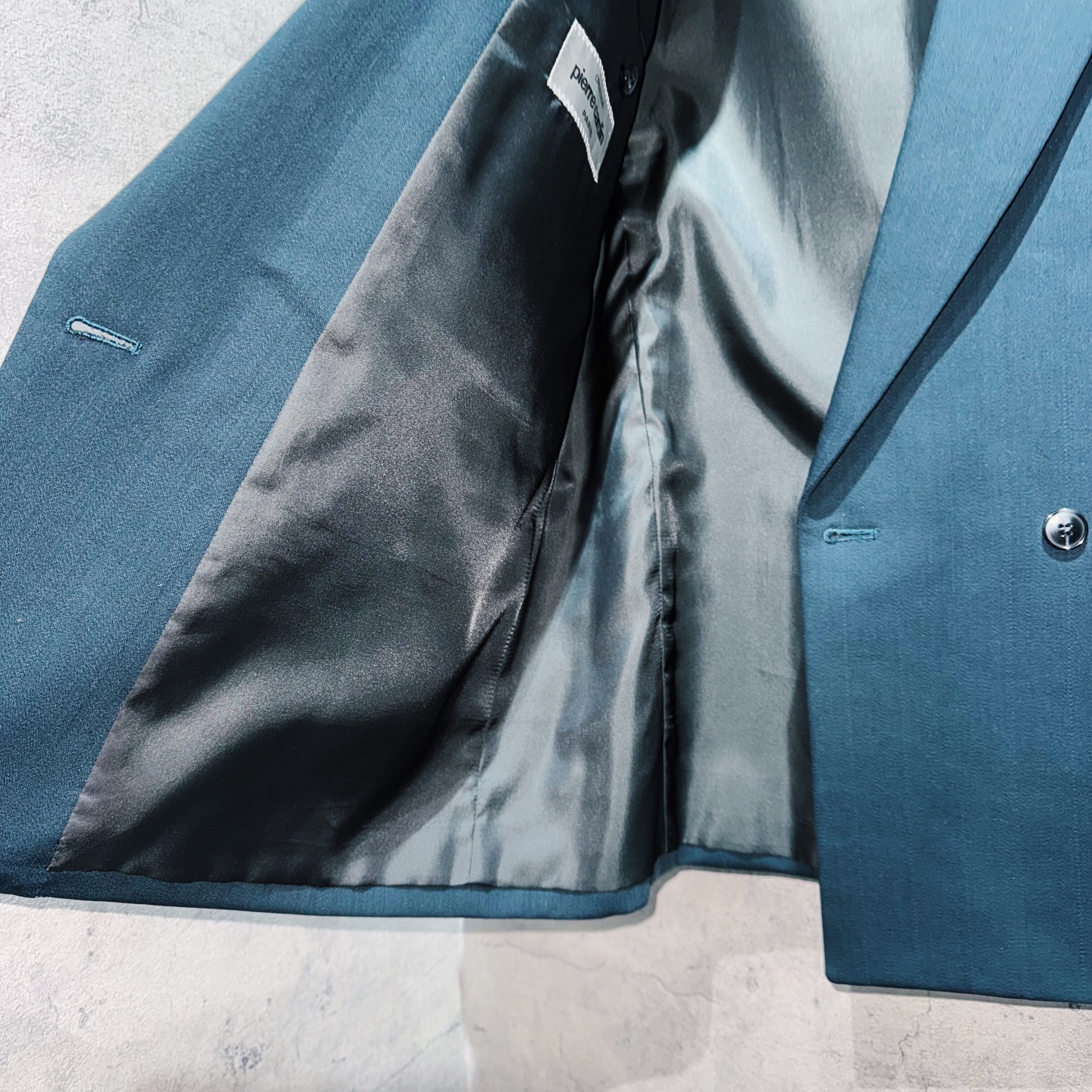 非常に上品な光沢に身を包み、美しく発色する濃い青緑色を身に纏ったセットアップ。式典などで周りとの差別化は図りたいけど派手すぎるのも…という方に最適な色合いです。