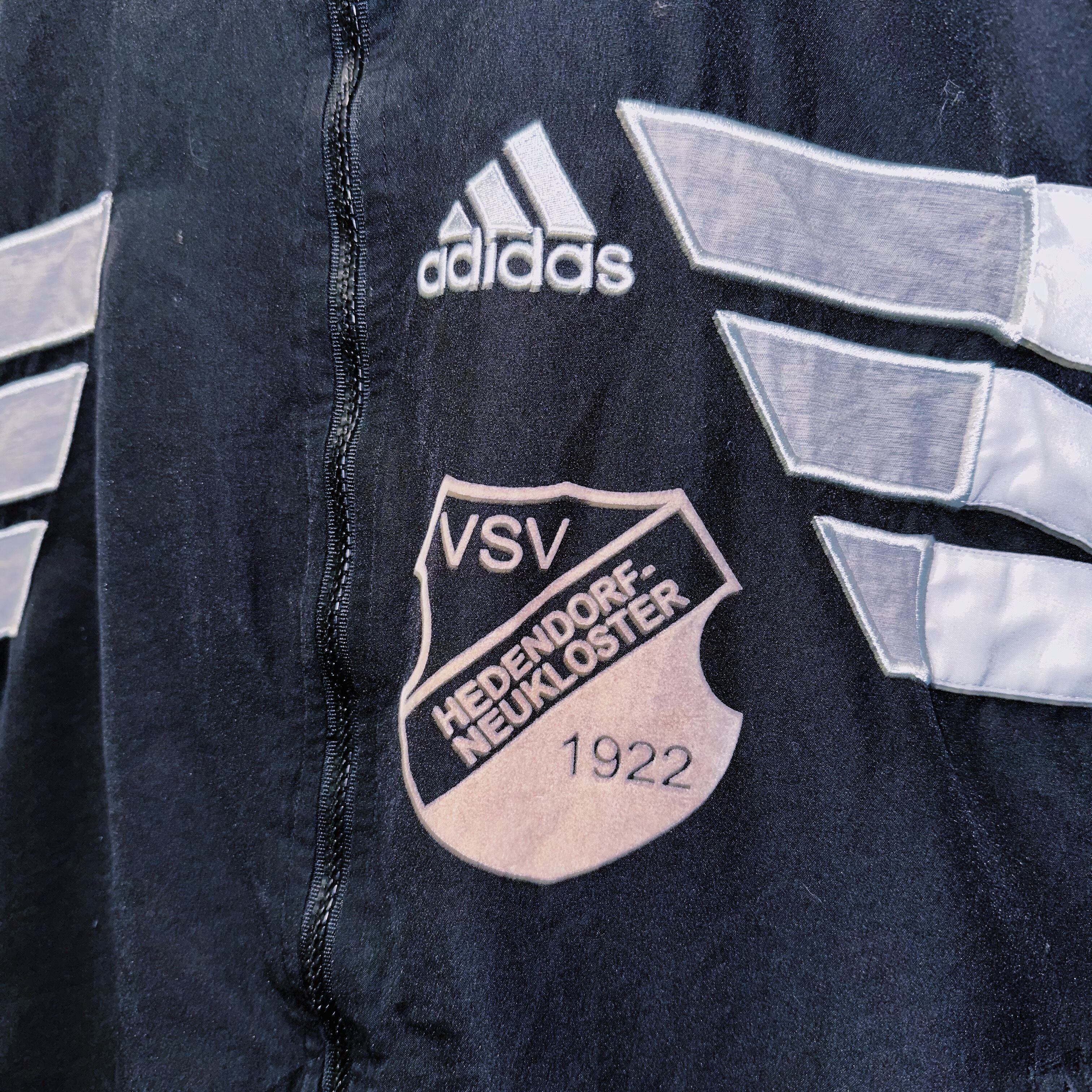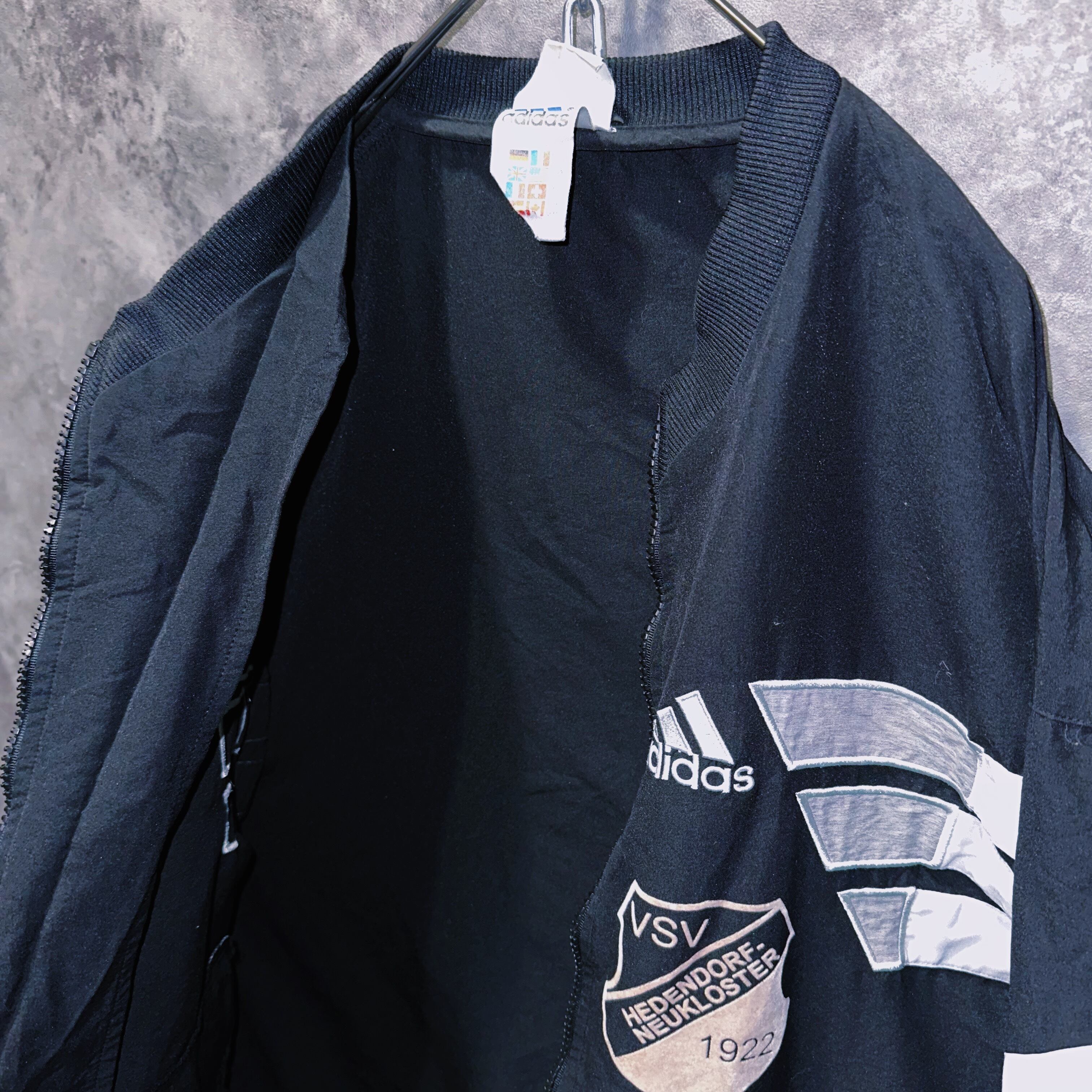 人気の高いモノトーンカラーしかもホワイトとのスウィッチングのブラック系は非常に高騰しているadidasの一つ。クルーネックでネックがなく首元が開いてデザインが施されておりより当時のadidasらしさが伺える逸品。