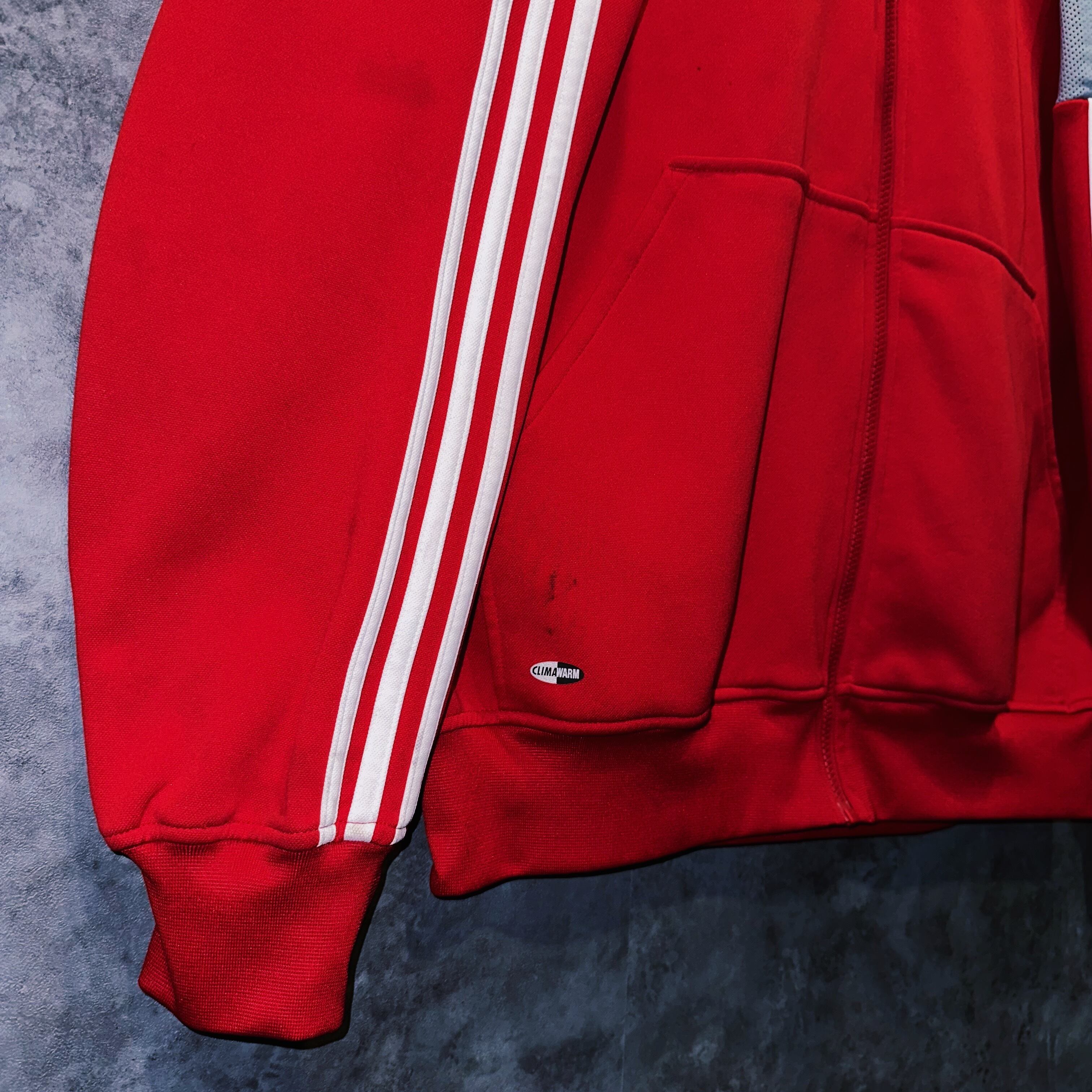 圧巻の存在感を誇るクロムレッドメインカラーとしたフーディートラックジャケット。フロントには"adidas"と施され、スリーブラインにはメッシュが切替になっておりストリートさを演出。