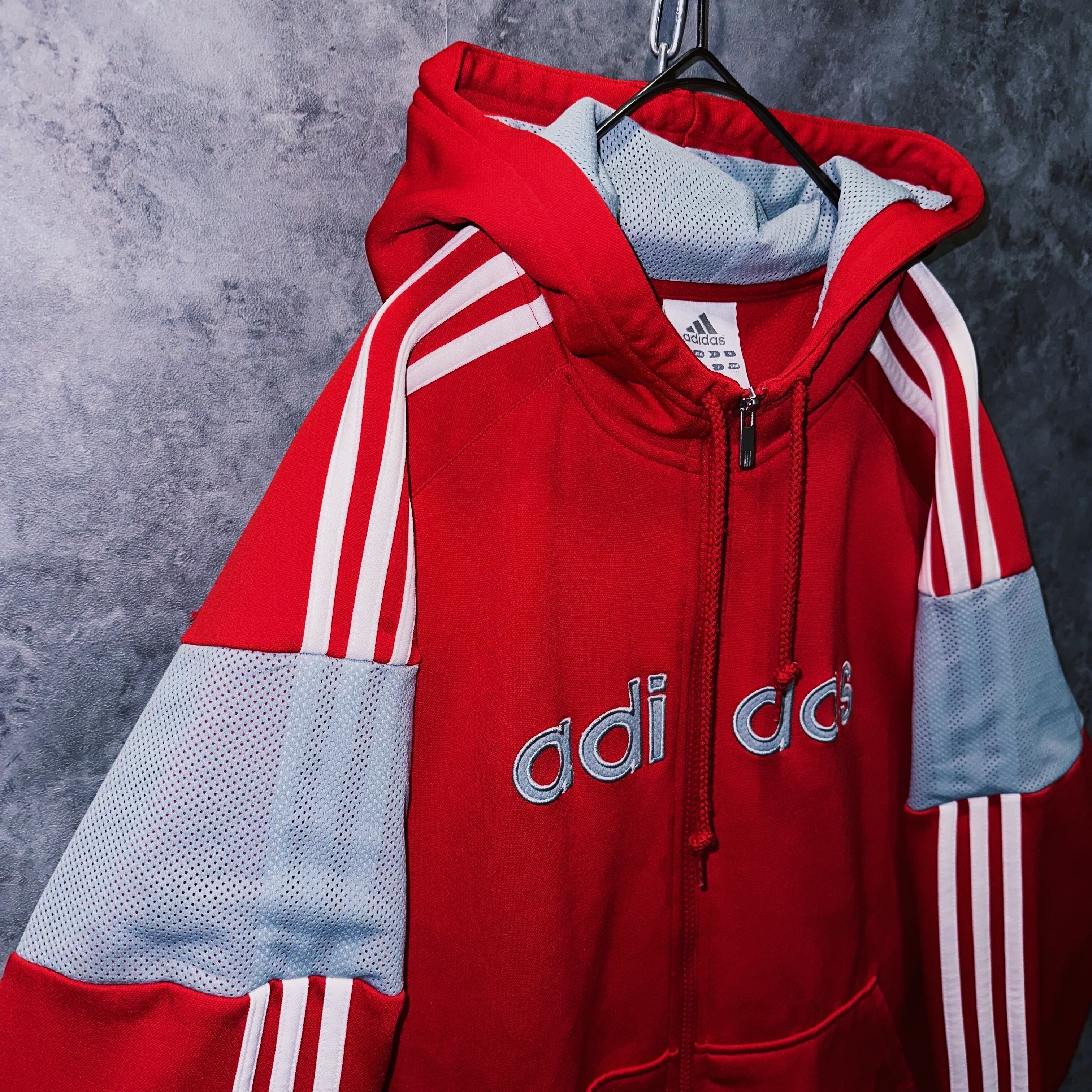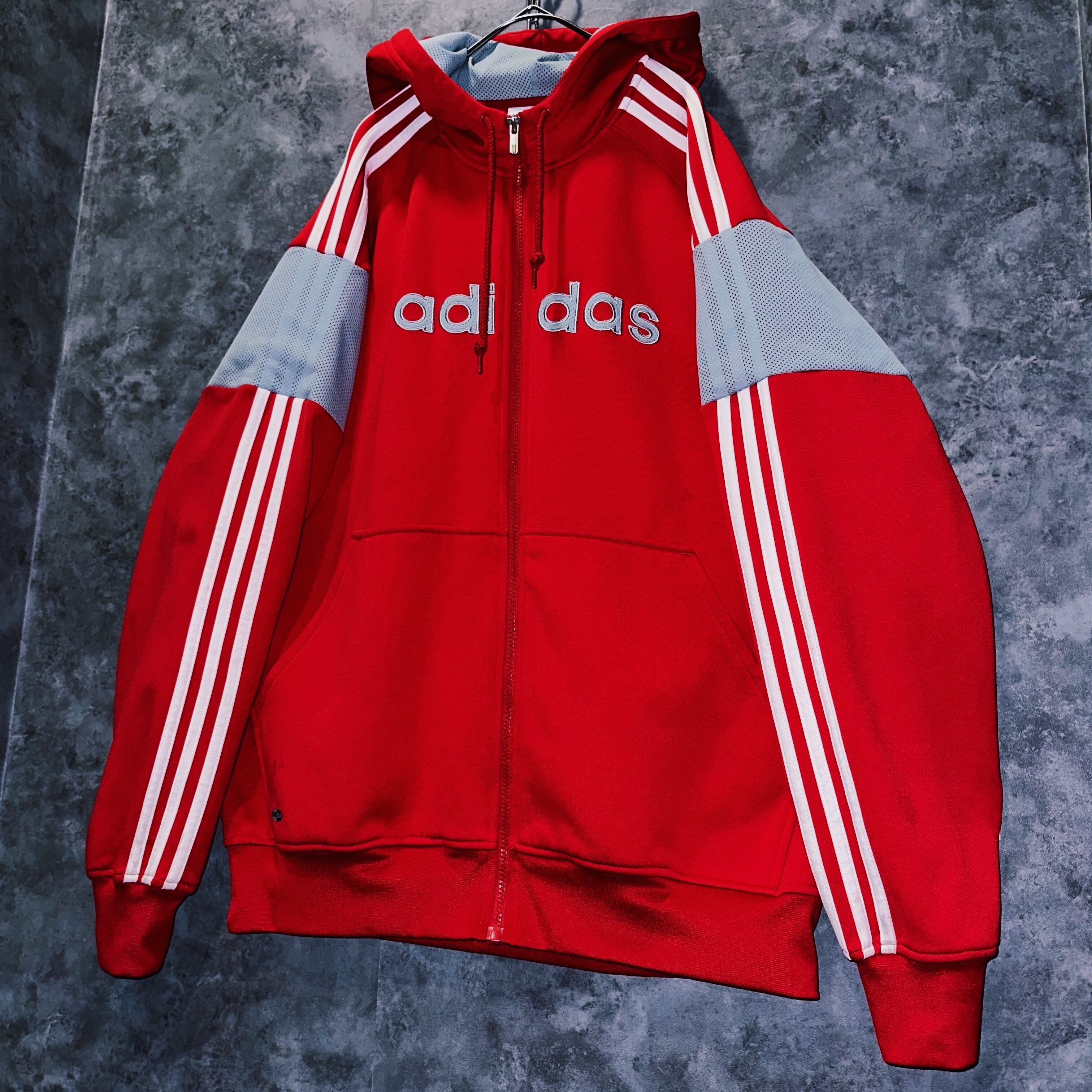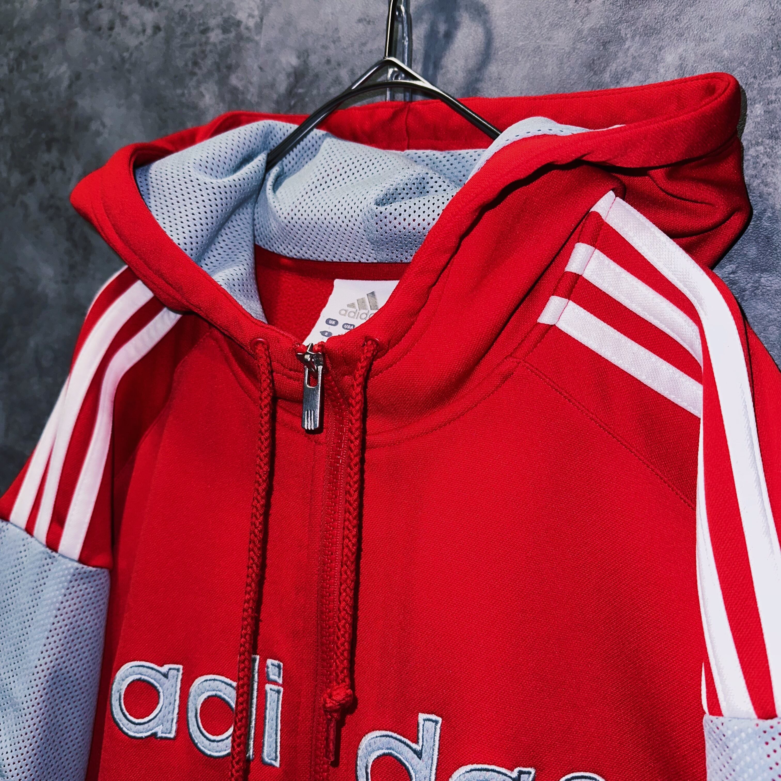 ヴィンテージ"adidas"メッシュスイッチングデザインスリーストライプスフーディートラックジャケット