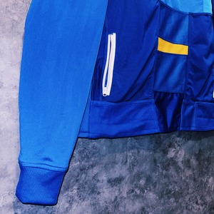 他数のトラックジャケットをパッチワークでデザインを施しており、全てバラバラで圧巻の存在感。無数のトラックジャケットで中には名チームや企業などのチームウェアも存在している個体もあります。