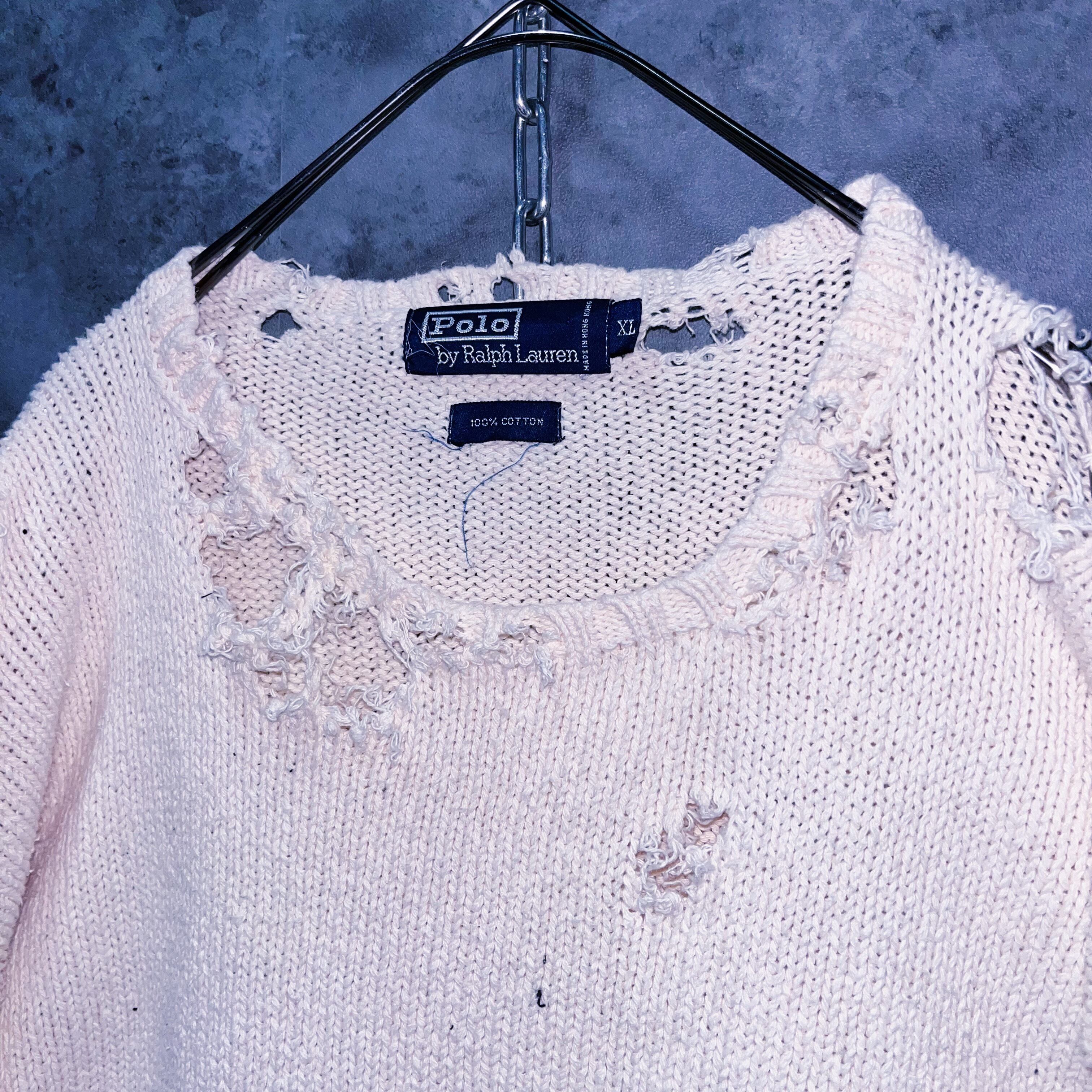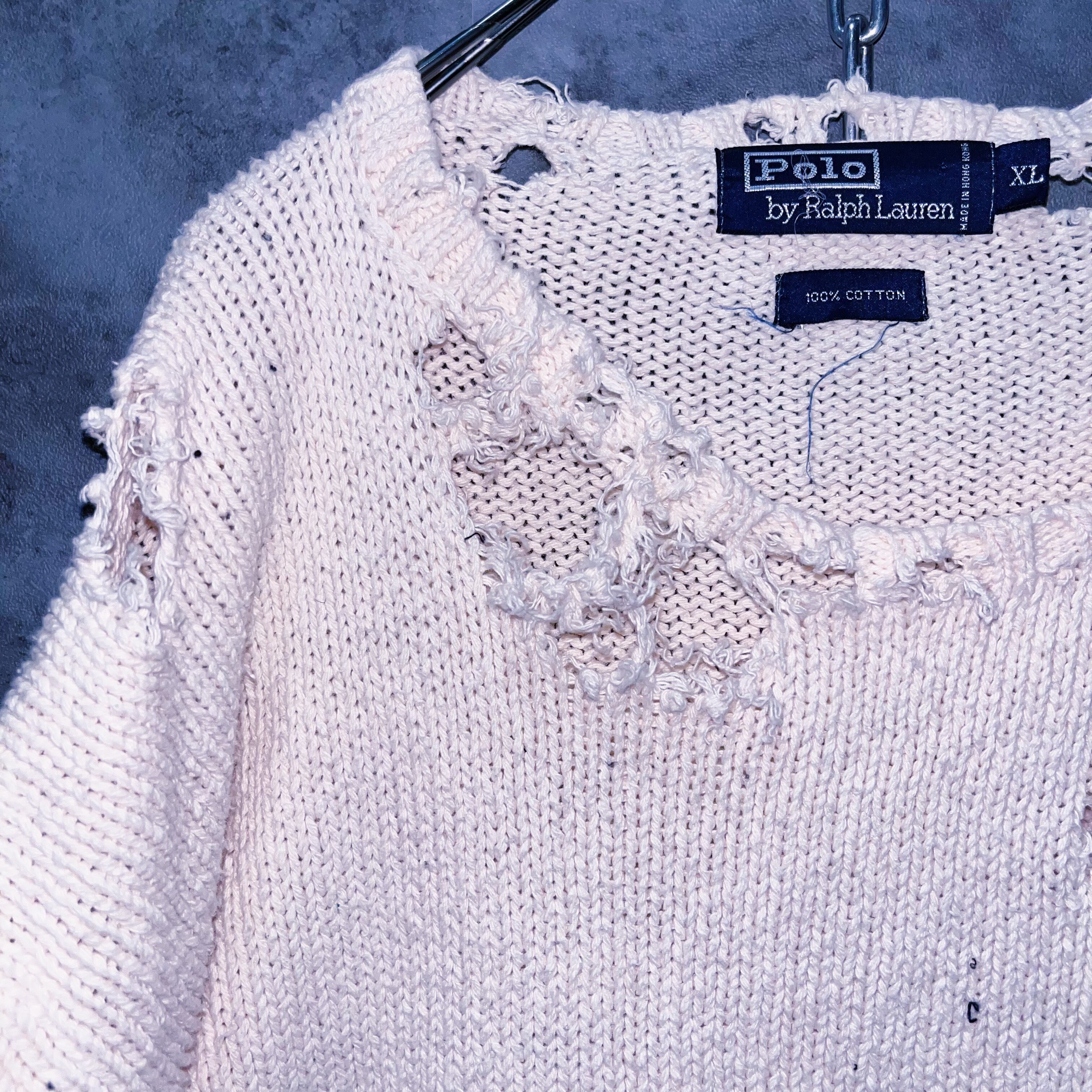 90’sヴィンテージ“ポロラルフローレン”プレーンデザインボロカスタムコットンニットセーター