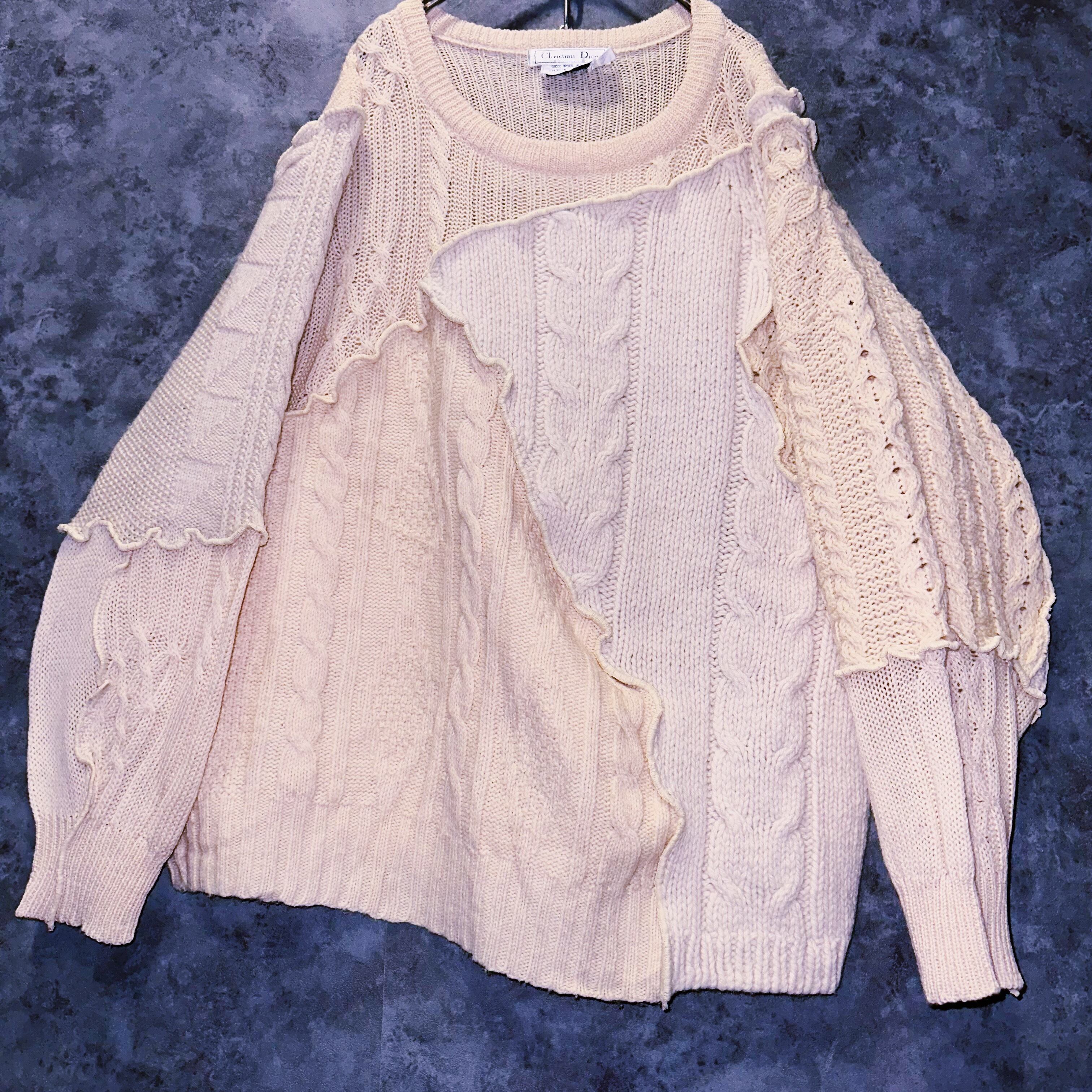 "ツギハギ"クレイジードッキングデザインリメイクフィッシャーマンニット
