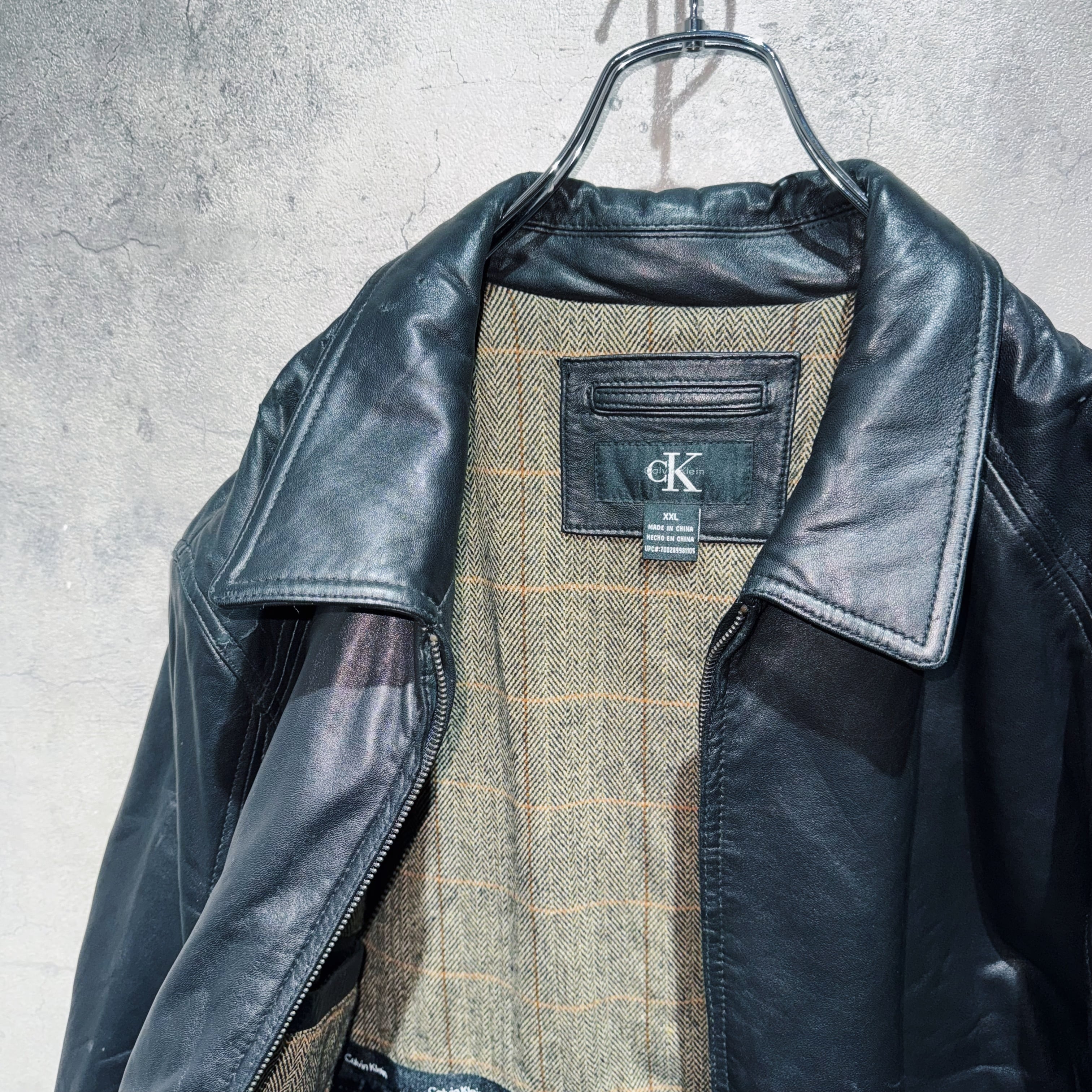 "カルバンクライン"ラムレザージップアップデザインジャケット