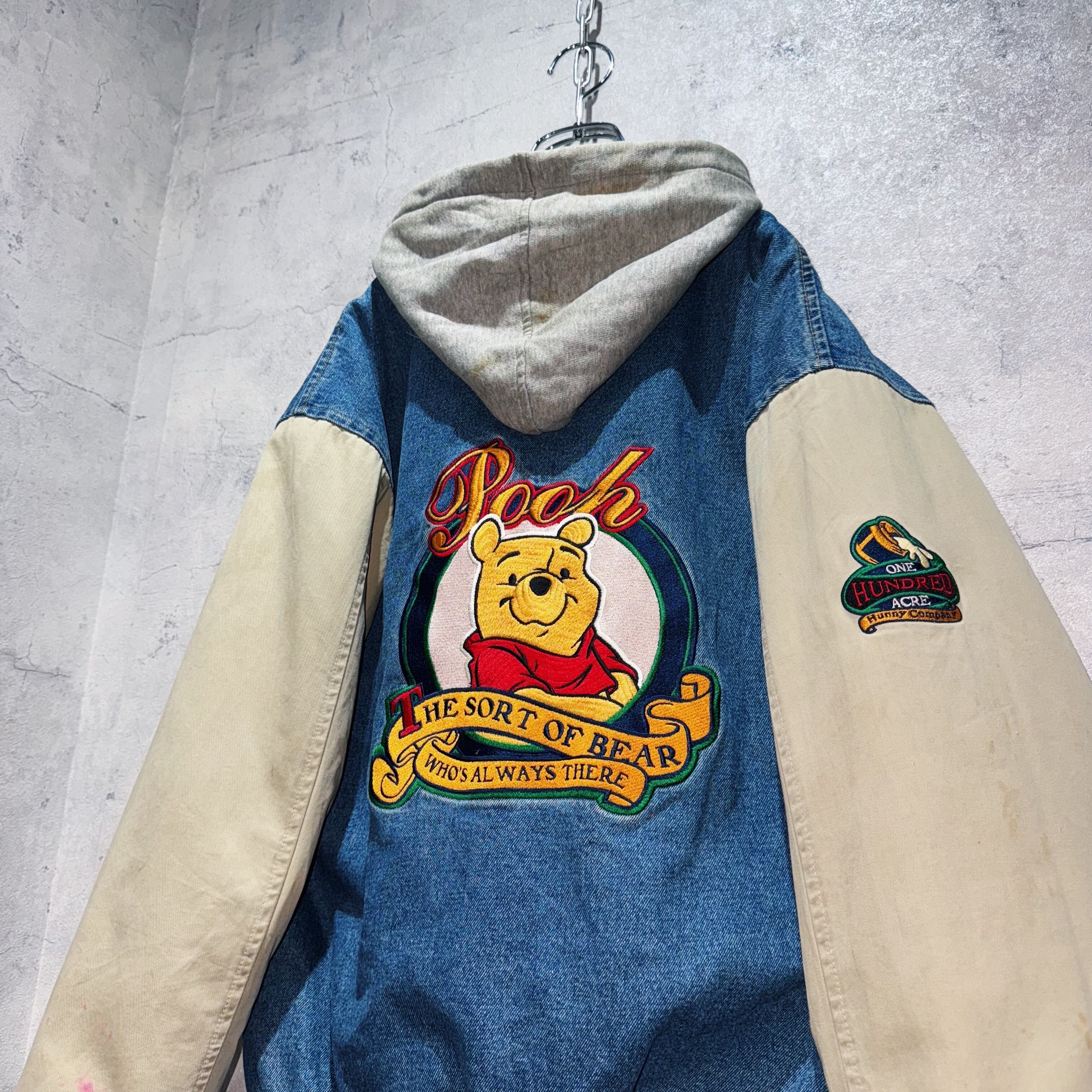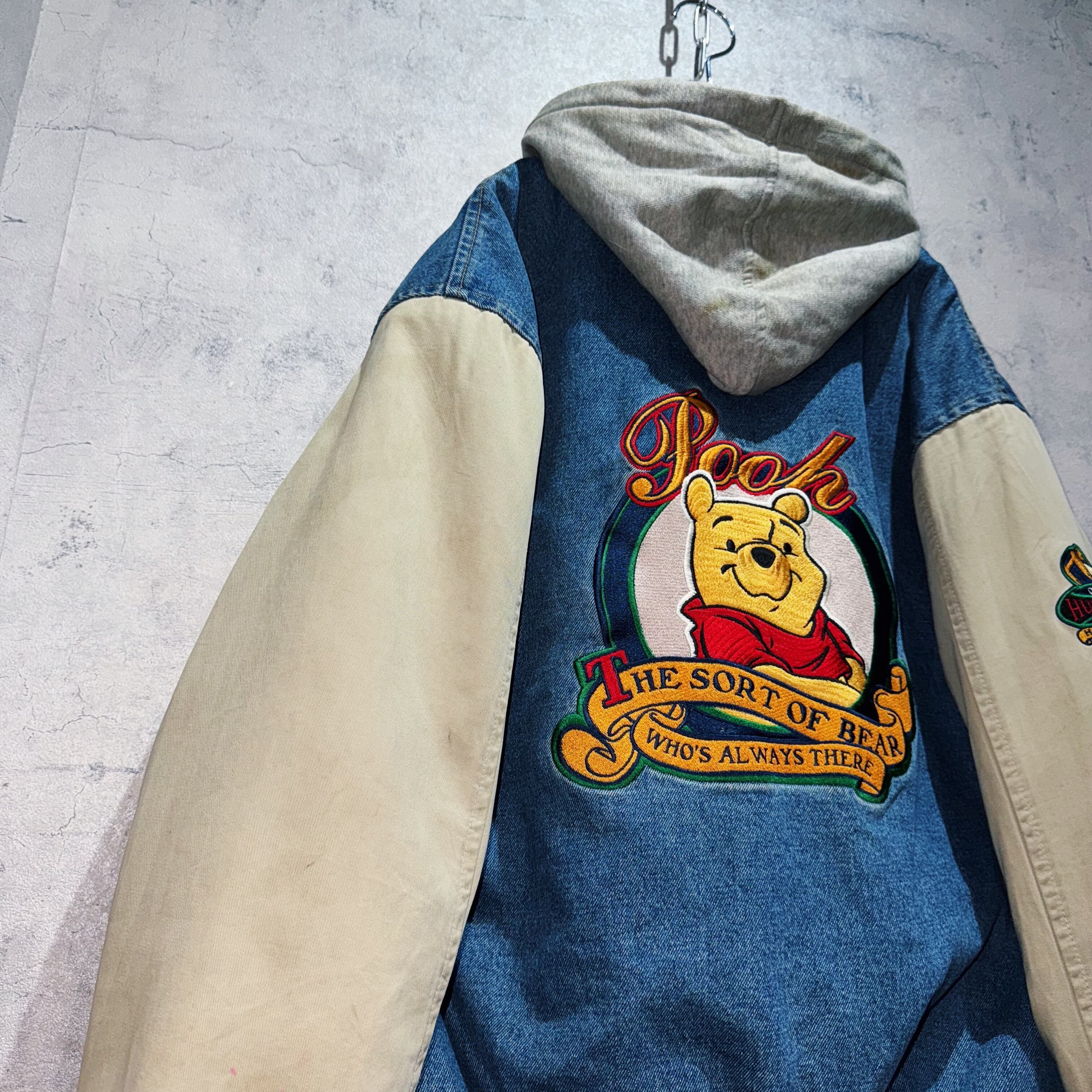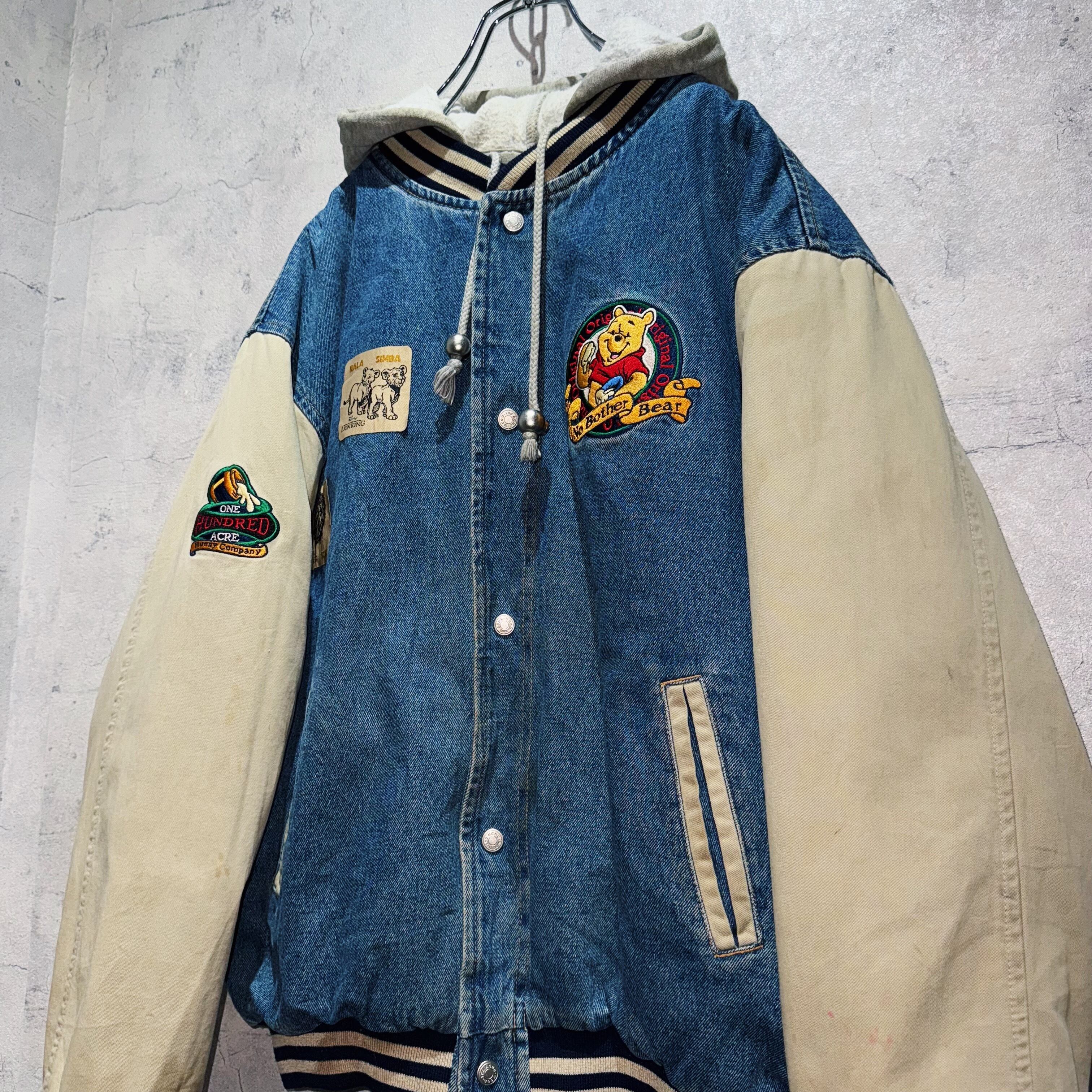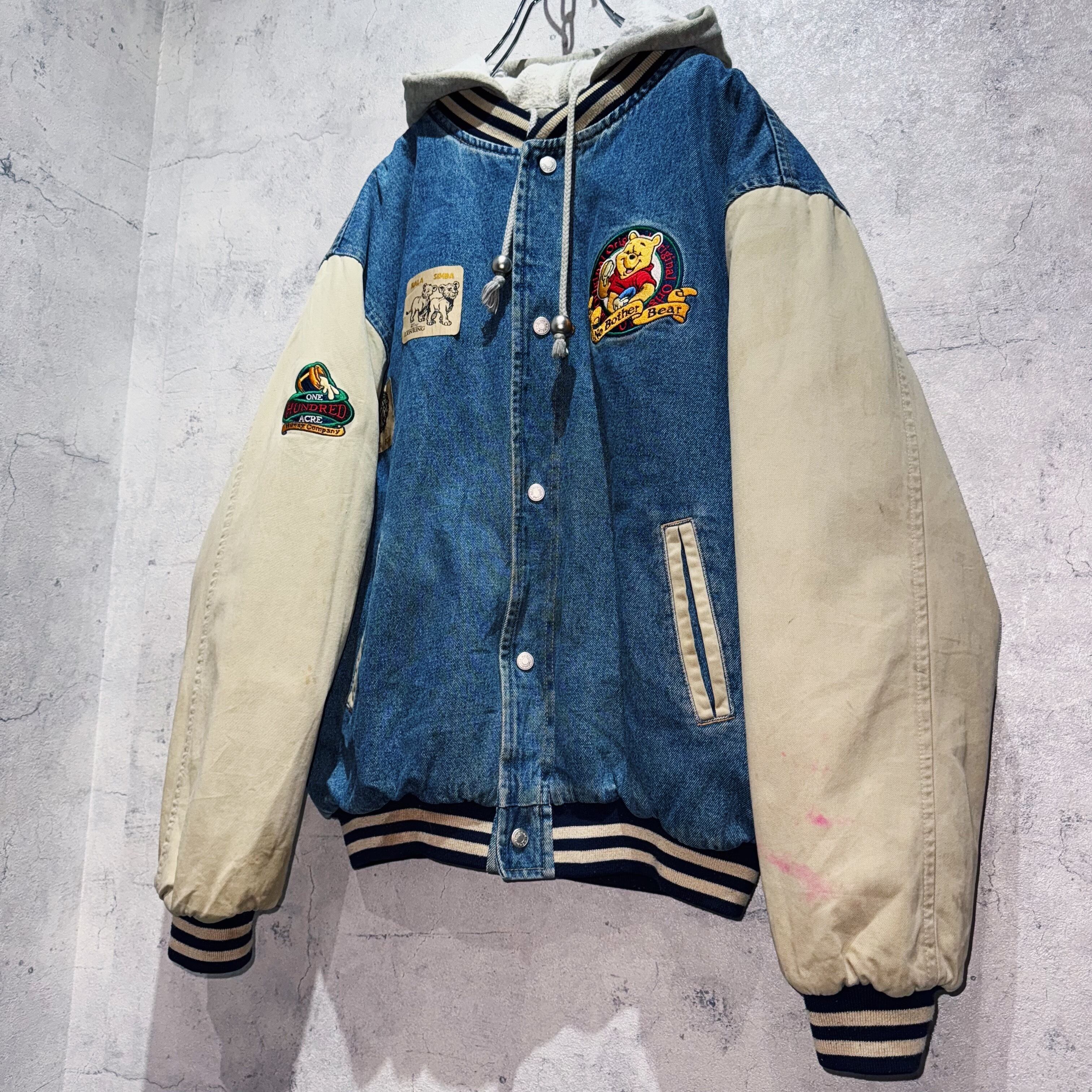 00年代"ディズニー"くまのプーさんエンブロイダリーデニムヴァーシティジャケット